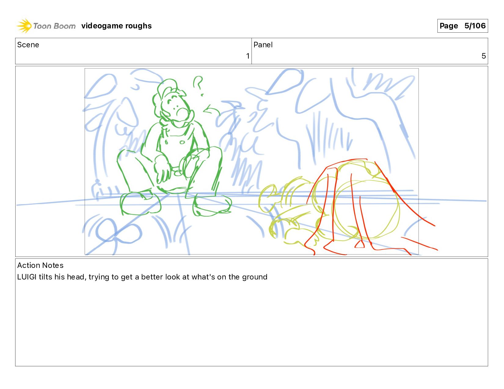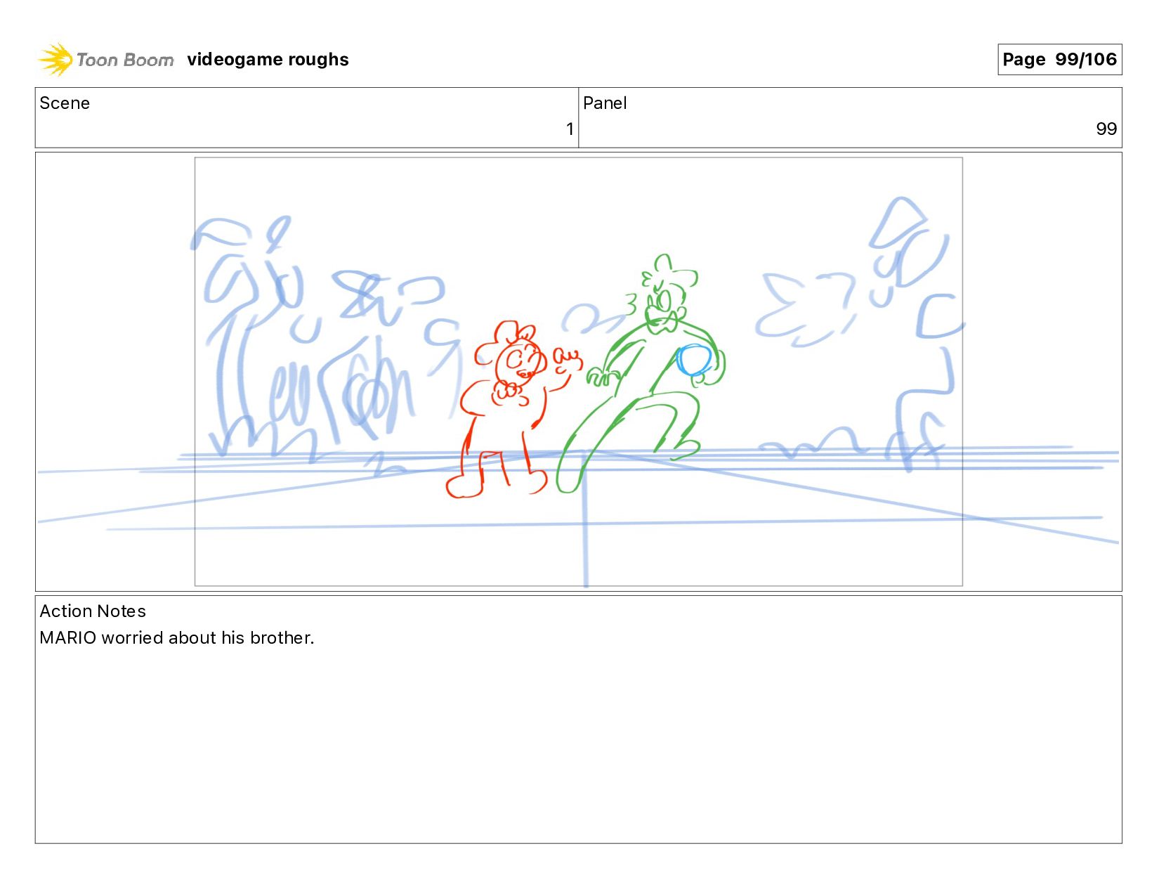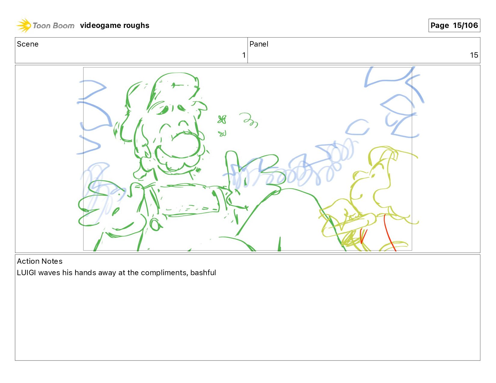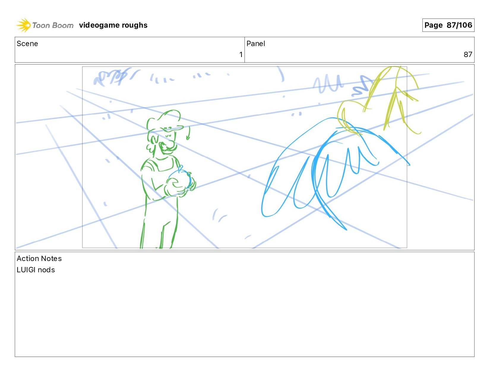 Scene 1 Panel 87 Action Notes LUIGI nods videogame roughs