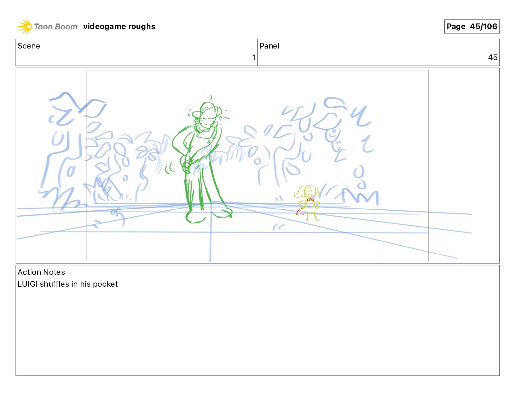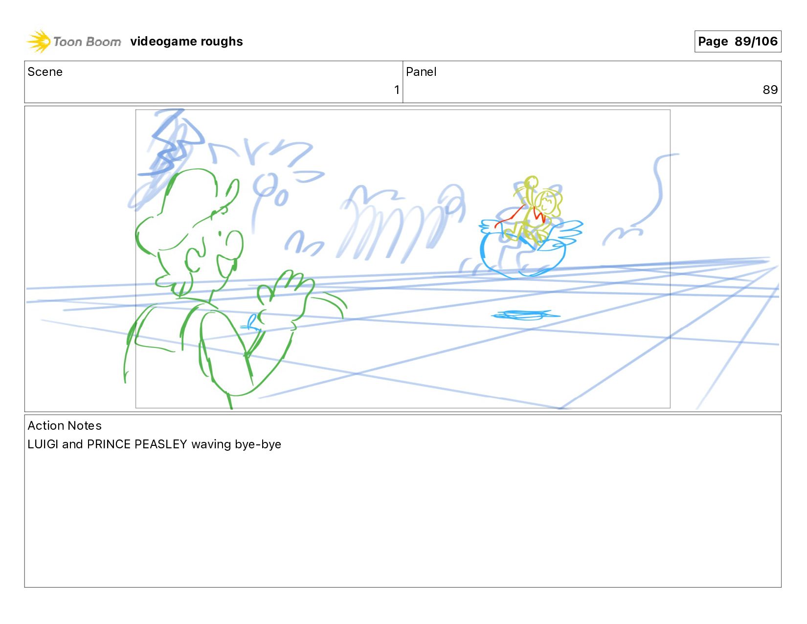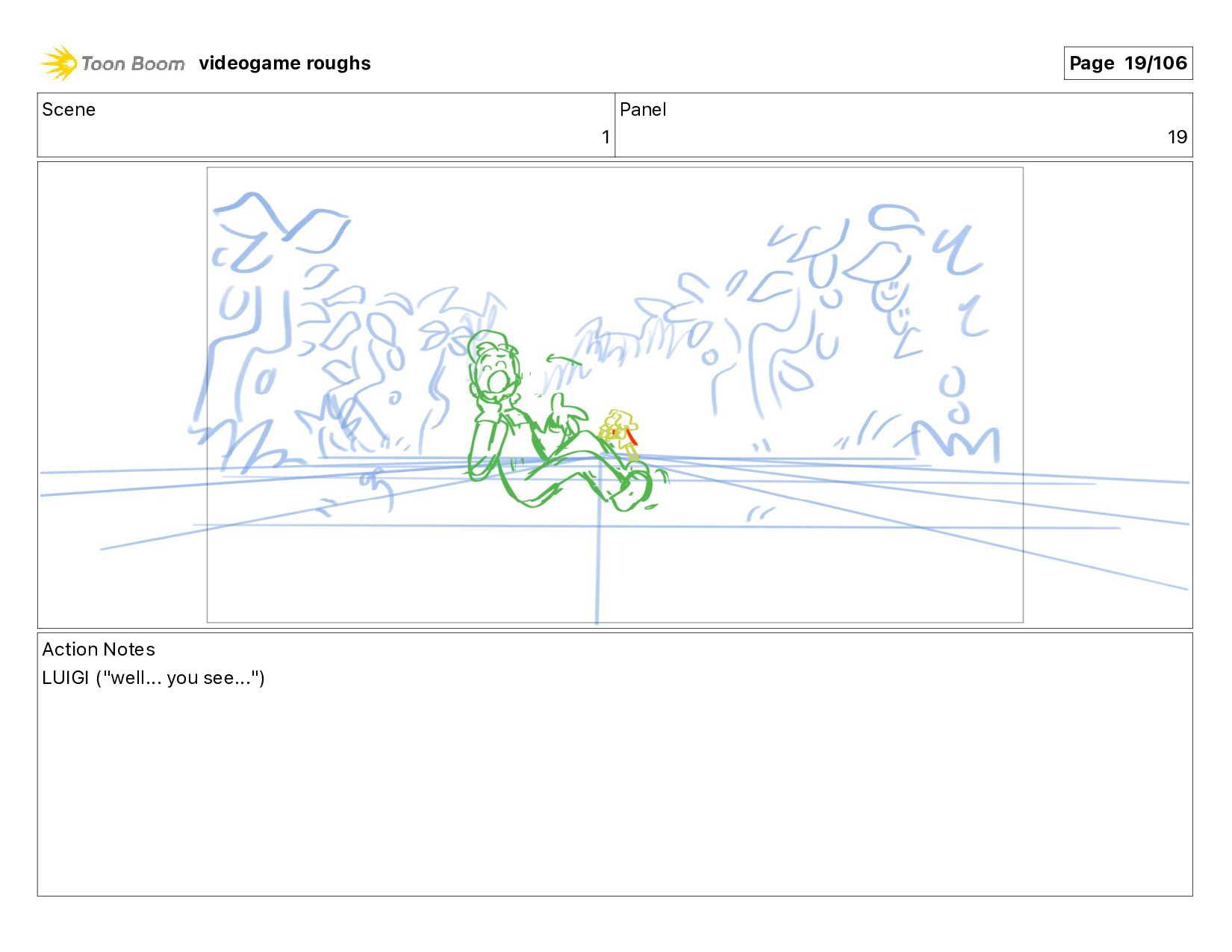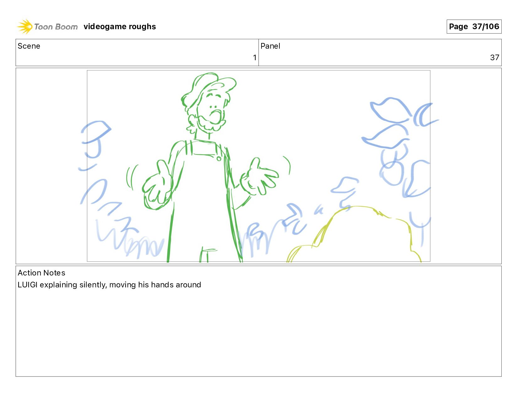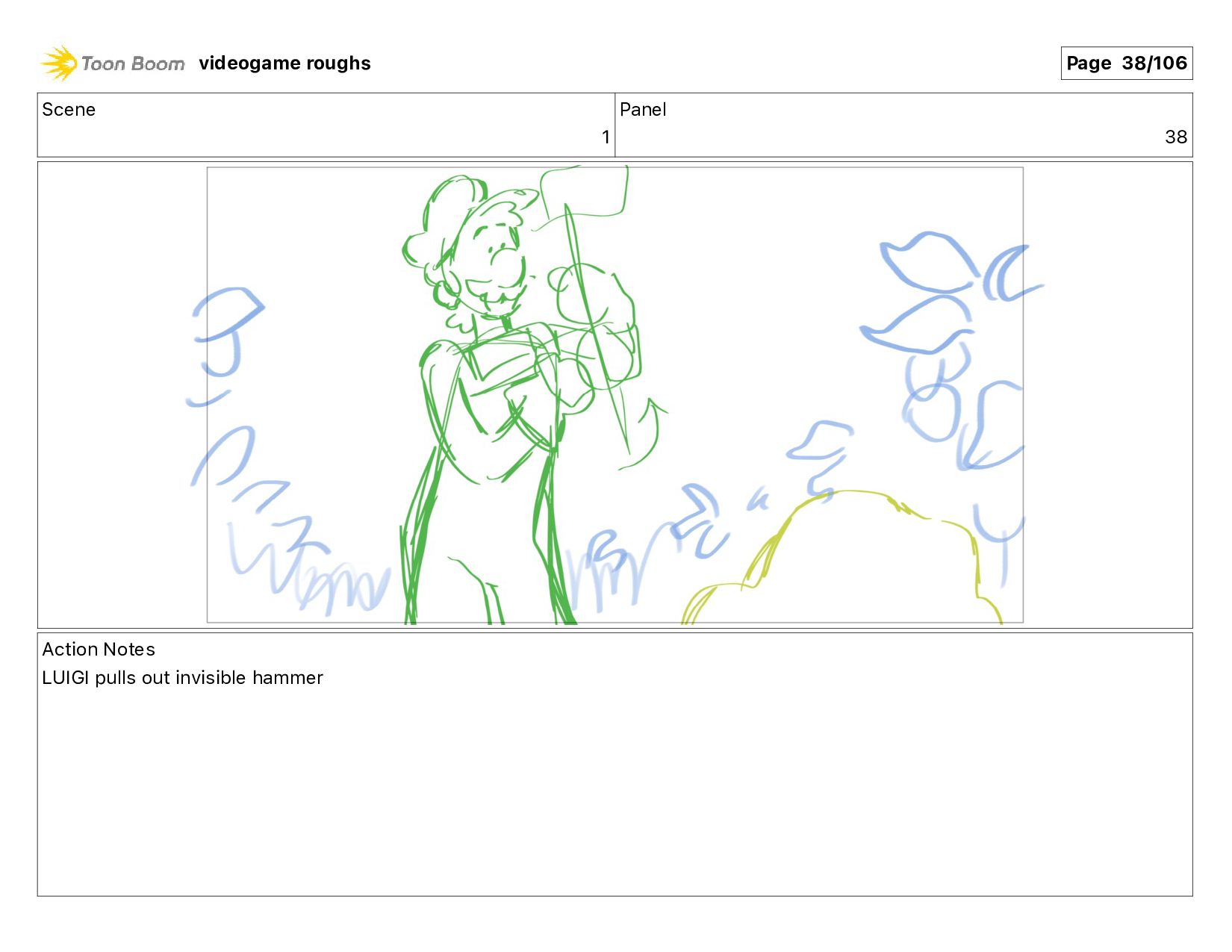 Scene 1 Panel 87 Action Notes LUIGI nods videogame roughs