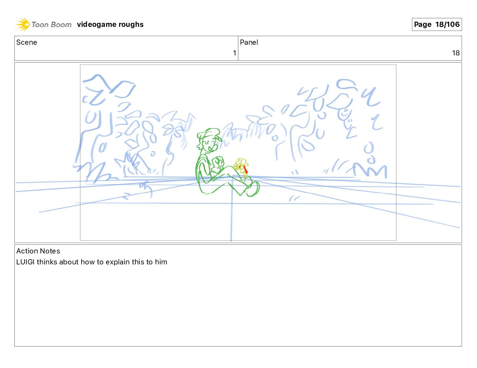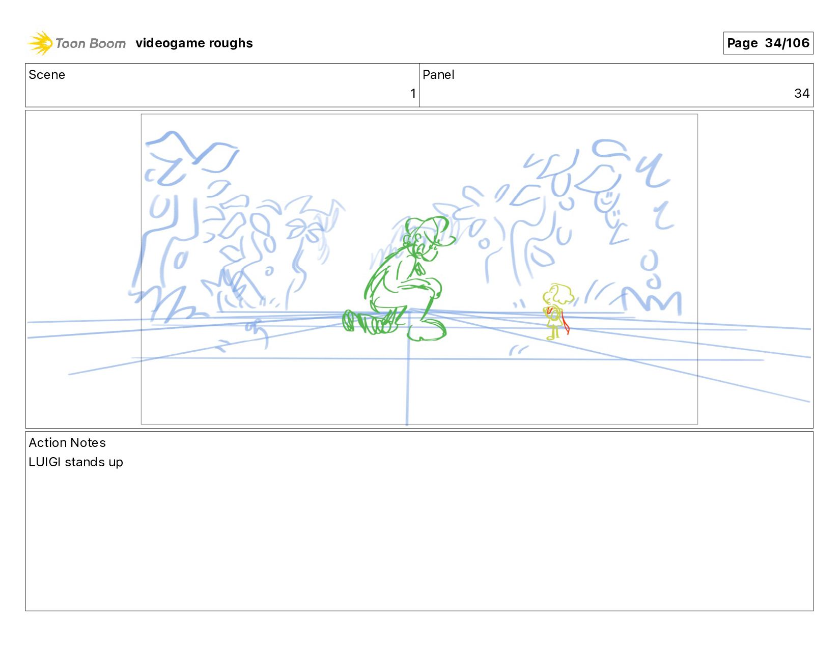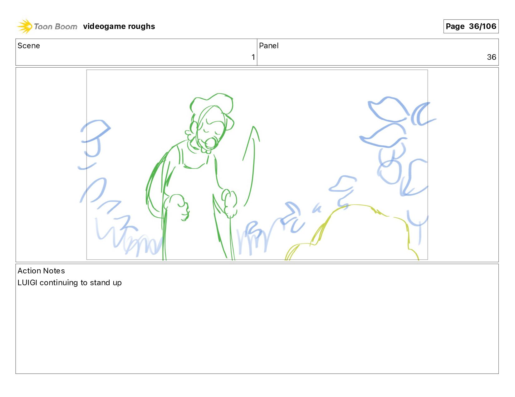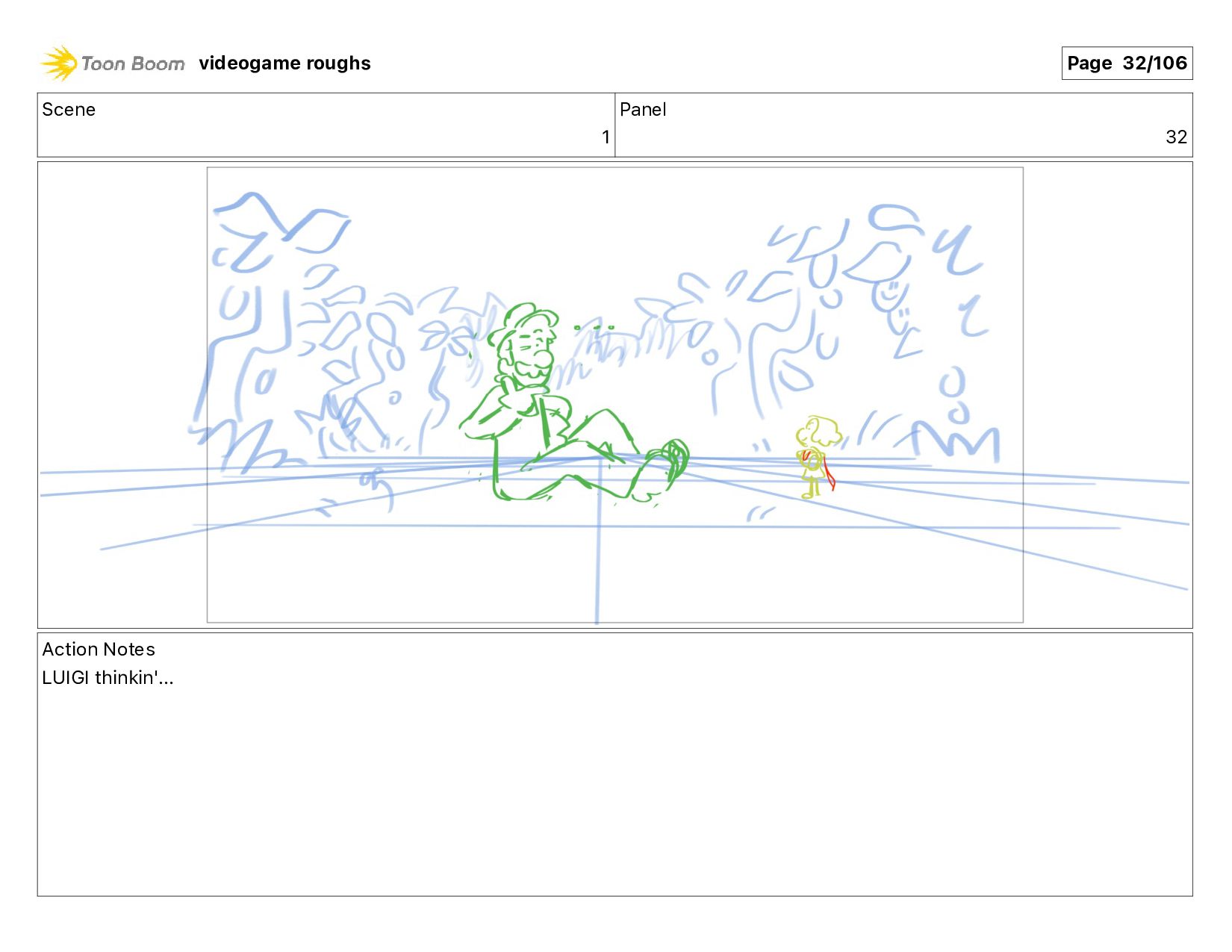 Scene 1 Panel 87 Action Notes LUIGI nods videogame roughs