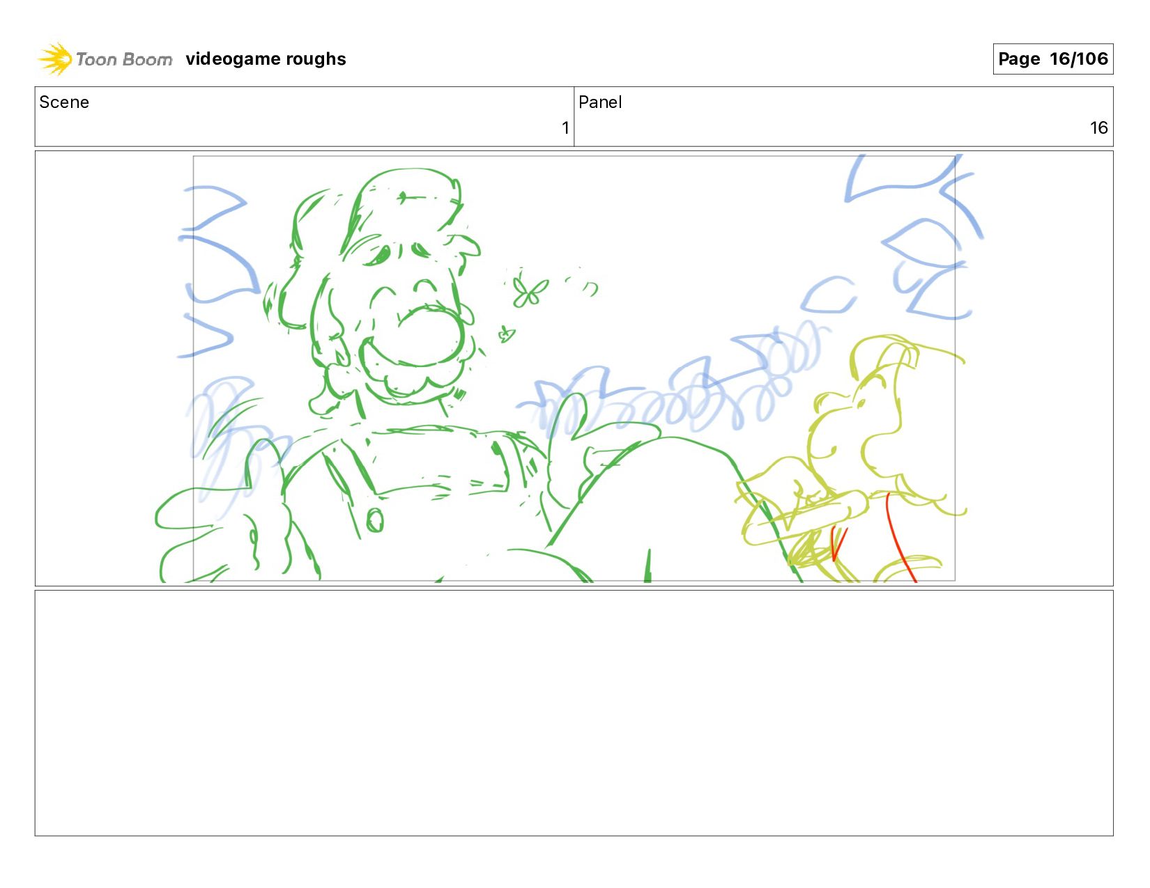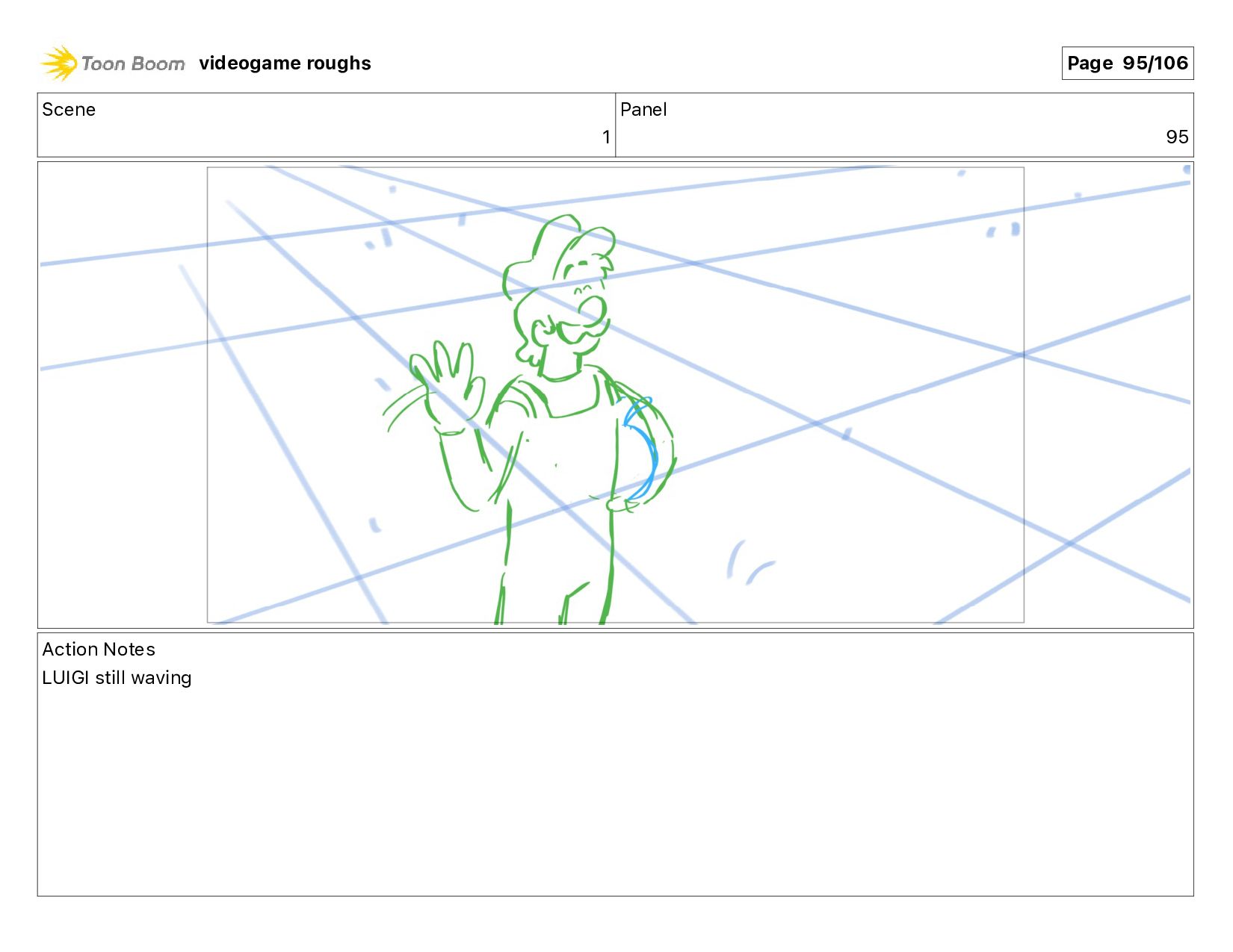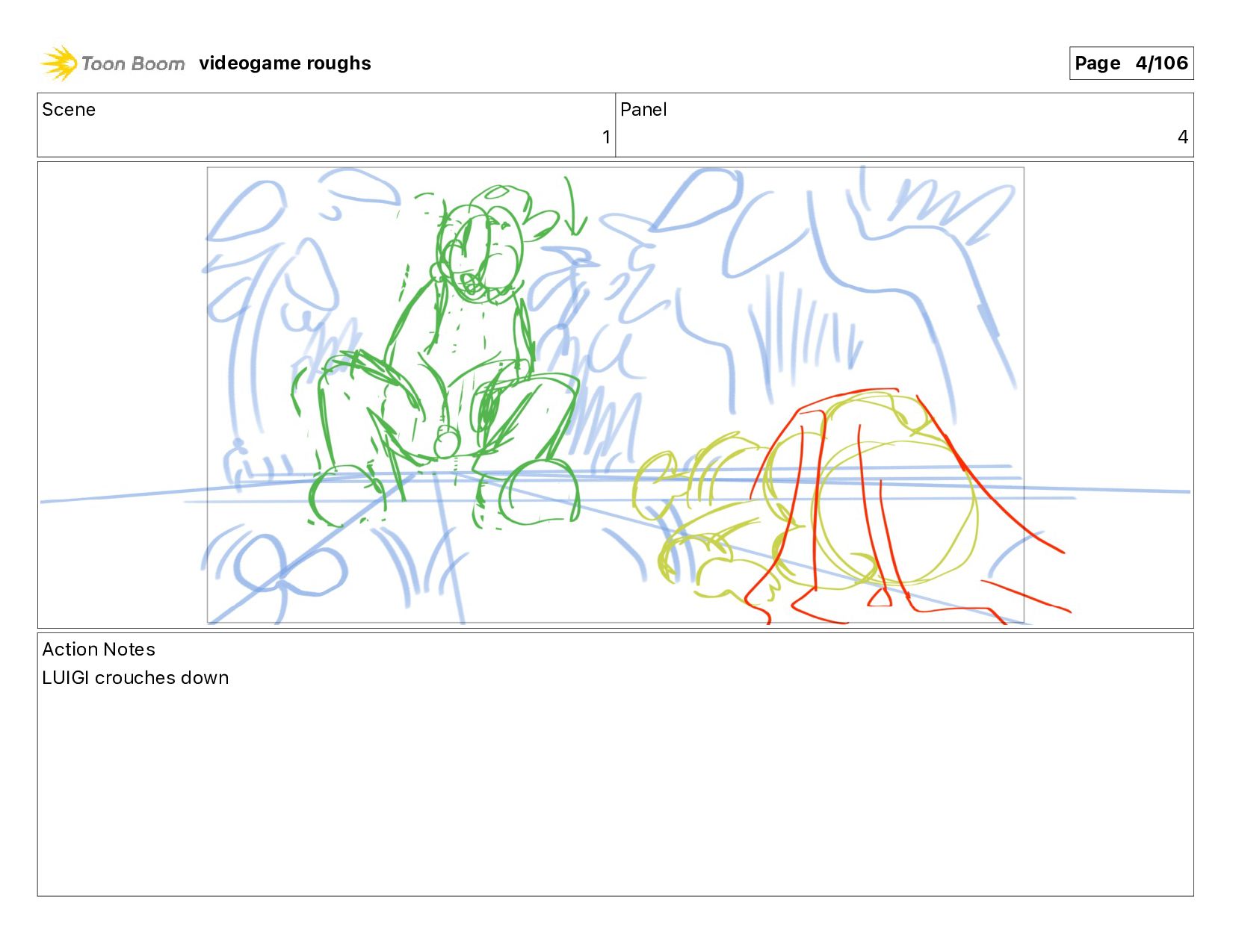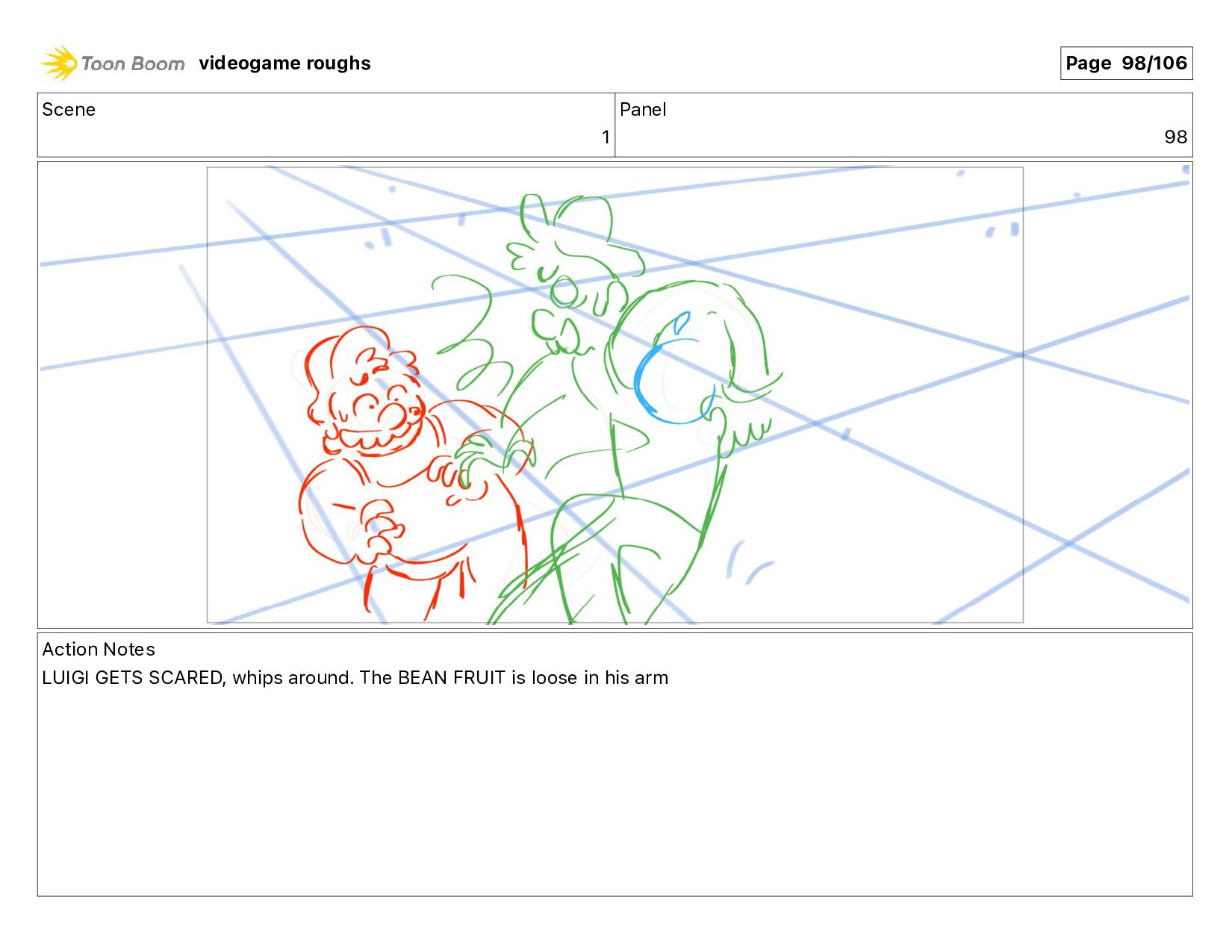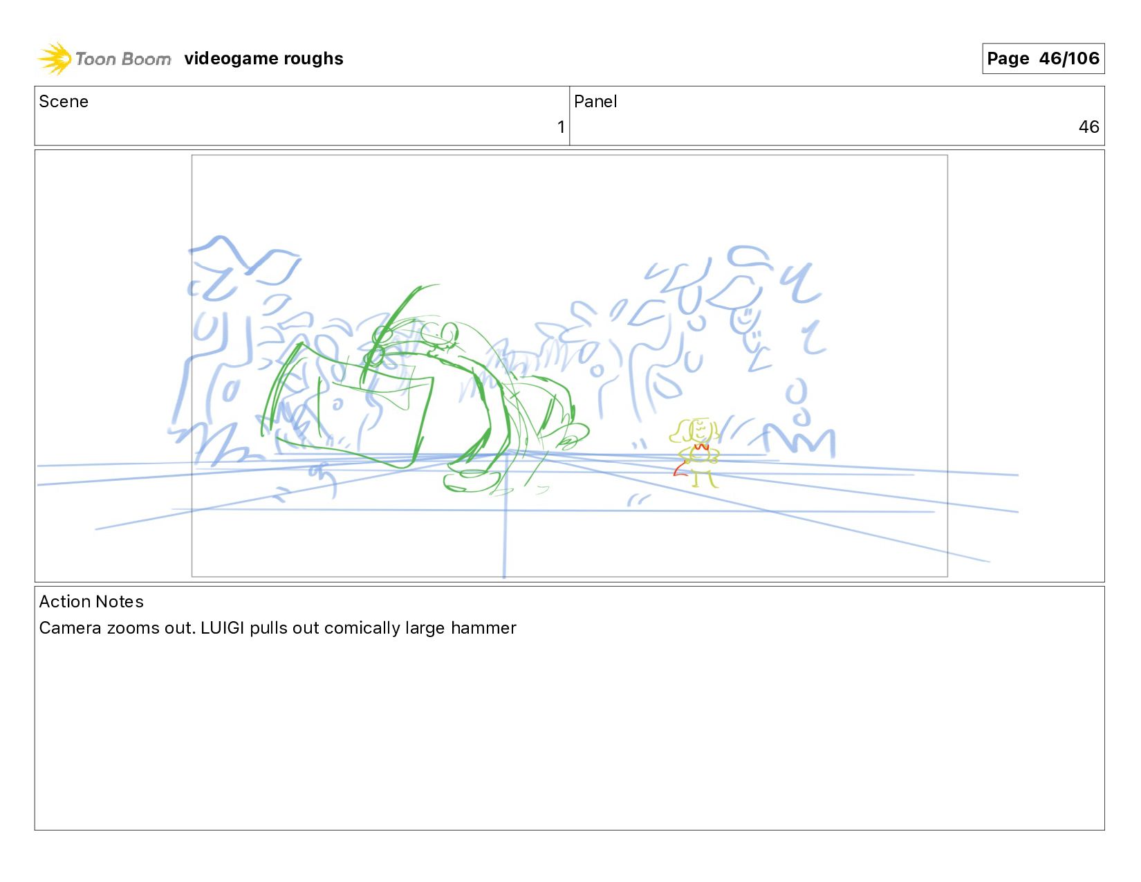 Scene 1 Panel 87 Action Notes LUIGI nods videogame roughs