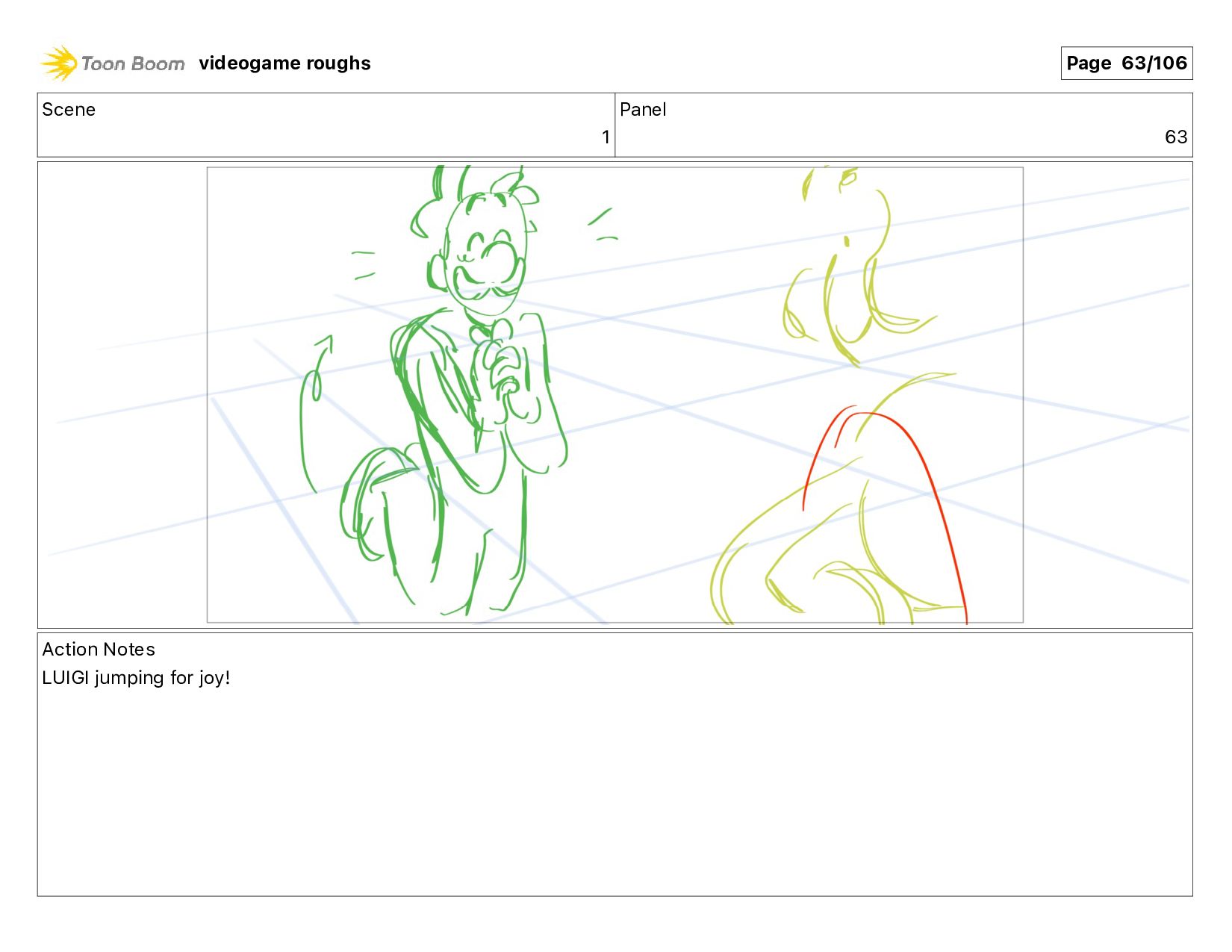 Scene 1 Panel 63 Action Notes LUIGI jumping for joy!