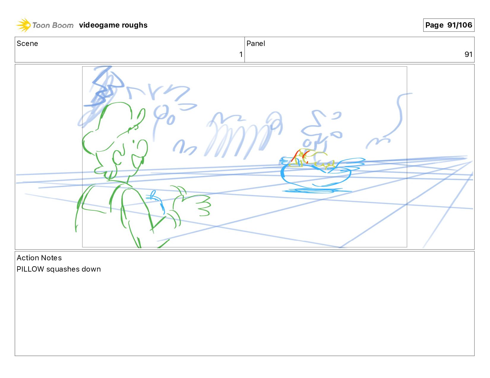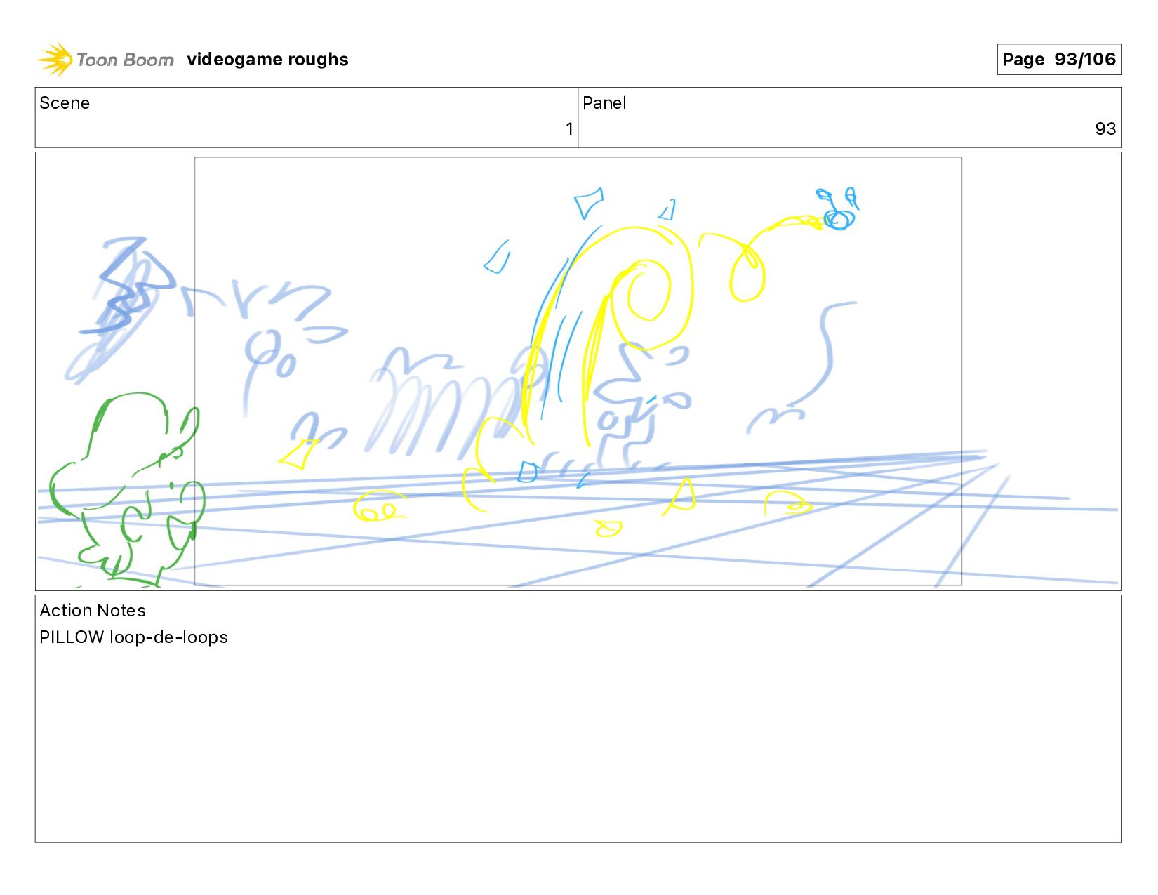 Scene 1 Panel 93 Action Notes PILLOW loop-de-loops videogame roughs