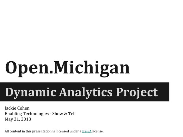 2013 with a goal of publicly sharing Open.Michigan usage data, identifying interesting patterns in usage of Open.Michigan content, and updating displays of that data in real time.