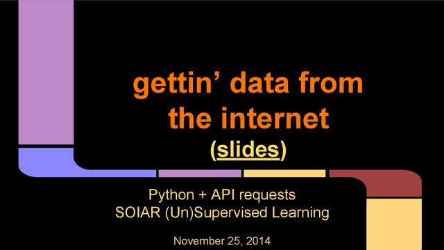 pip, download and save the file found here, to your desktop: http: //bit.ly/getpip-download • go to https://8tracks.com/developers/new and get a developer key (you’ll need an account). copy and paste it into a text file. we’re going to get data from 8tracks
