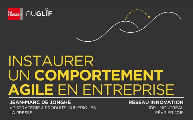 La vitesse du changement autour de nous est aujourd’hui vertigineuse. La technologie, votre marché, vos clients, vos compétiteurs, vos employés, etc. ; rien n’y échappe ! Pour survivre, votre entreprise sera condamnée à s’adapter, innover et se transformer continuellement. Elle devra devenir « agile » de gauche à droite, d’en haut jusqu’en bas.
