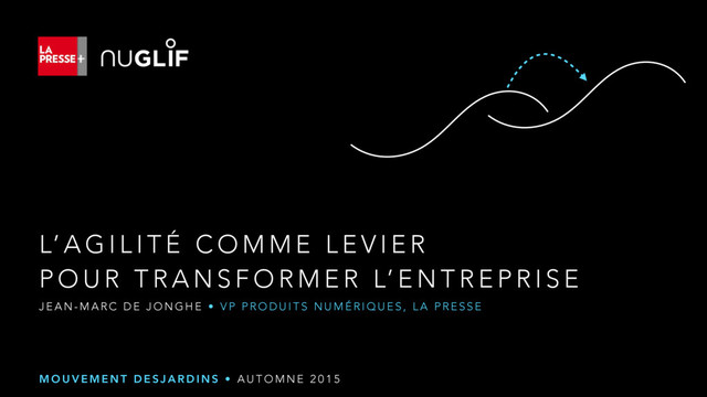 Présentation dans le cadre d'une journée consacrée au virage numérique chez Desjardins. L’auditoire était composée de 200 personnes, majoritairement des gens en architecture d’entreprise, sécurité, conformité, centre d’expertise. Un beau groupe allumé et hyper dynamique.