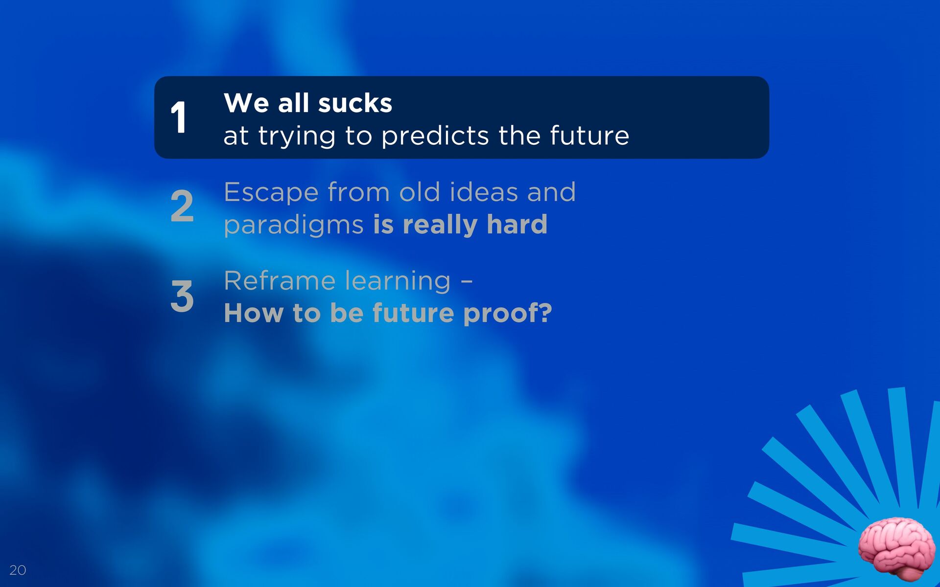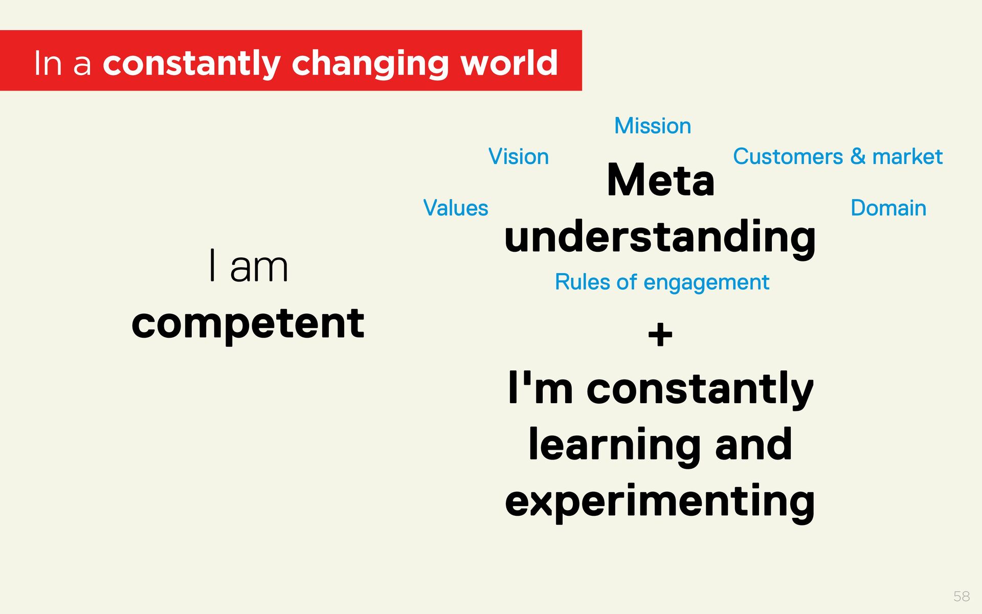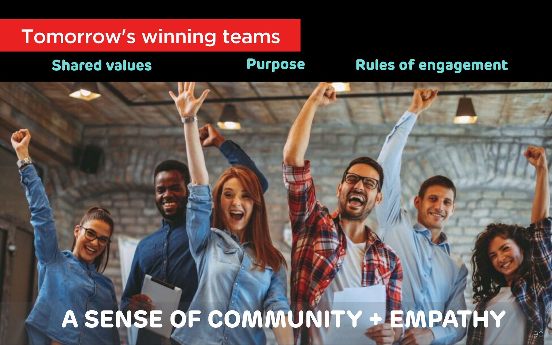 Speed of change, learning, collaboration, openness to change, world of tomorrow, etc.