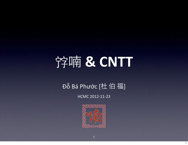 •TCVN/JTC1: tổ chức quốc gia •TCVN 5773:1993 & 6056:1995 •TCVN 8271:2011 (LaUn, Khmer, Chăm, Thái, Nôm) •1993: ISO 10646/Unicode được thông qua, chấp nhận chữ Nôm Chuẩn hoá chữ viết TCVN JTC1 4 4