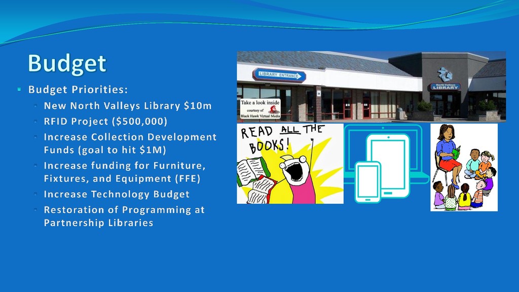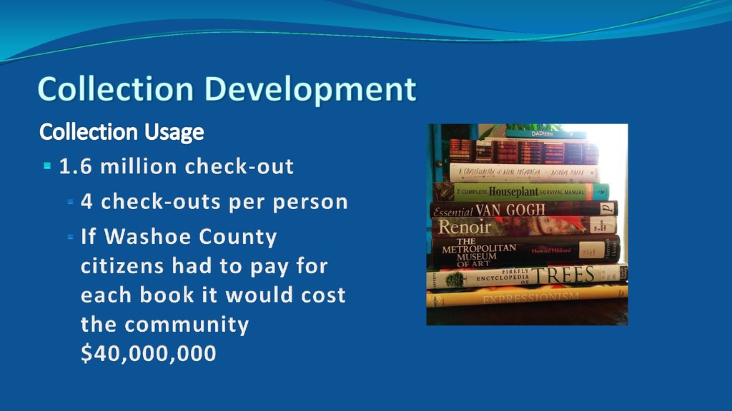 Presentation to Washoe County Library System Joint Meeting of Library Board of Trustees and Washoe County Board of County Commissioners.