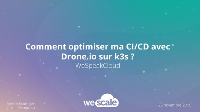 très rapide • Permet d’acquérir facilement le langage Kubernetes • Très léger, par contre attention à ce qu’on fait tourner dessus, en comptant les outils système • Produit stable • Pas de multi-masters pour l’instant Feedback sur le projet k3s Comment optimiser ma CI/CD avec Drone.io sur k3s ?