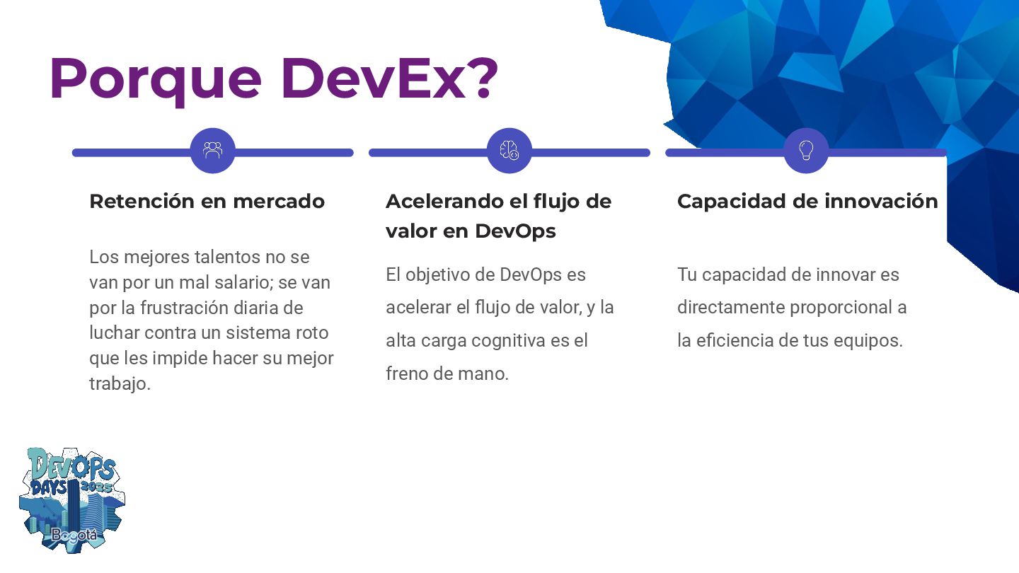 ¿El ecosistema de despliegue de tu empresa está agotando a tus desarrolladores? La Experiencia del Desarrollador (DevEx) no es solo una palabra de moda; es la clave para la productividad y el éxito. En esta charla, te mostraré cómo ir más allá del hype con estrategias prácticas para reducir la carga cognitiva que enfrentan tus equipos. Te guiaré en cómo simplificar la configuración y estandarizar los flujos de trabajo para que tus desarrolladores puedan enfocarse en el código en lugar de en la complejidad de la infraestructura. ¡Aprende a construir un entorno que tus equipos amarán y que te dará un retorno tangible!