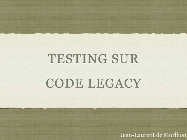 TESTING SUR CODE LEGACY Jean-Laurent de Morlhon
