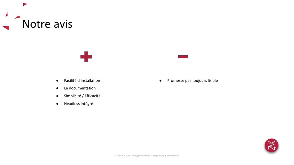 Notre avis • Facilité d’installation • La documentation • Simplicité / Efficacité • Headless intégré • Promesse pas toujours lisible