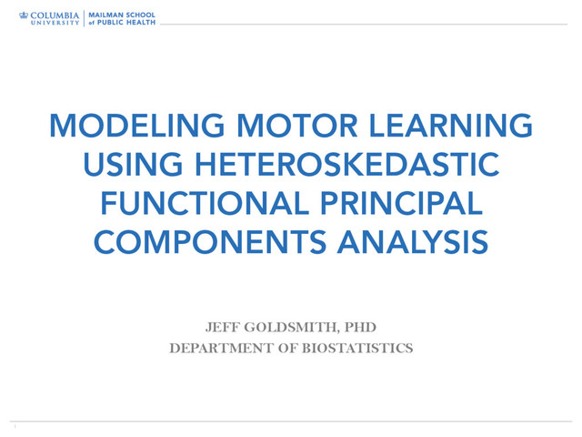 (Chiou et al 2003) • Implies some covariate dependence in the variance, but mostly focuses on the mean • Allow complete covariance to be covariate dependent (Jiang and Wang 2010) • Non-constant FPCs are harder to interpret • Difficult to posit complex models