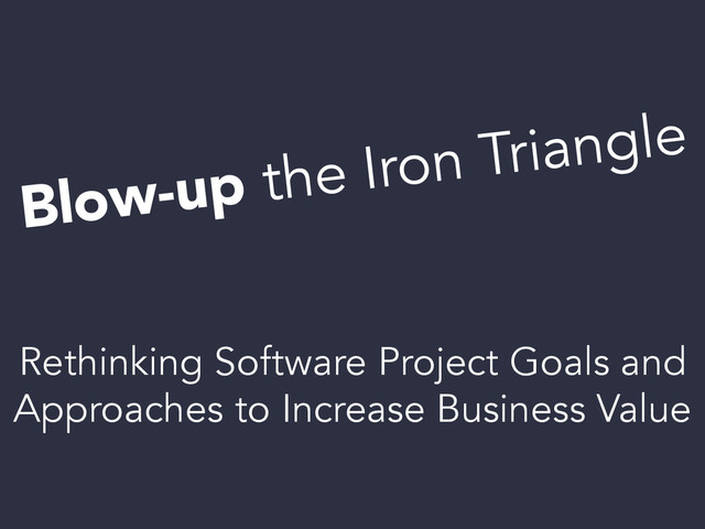 In an effort to bring more value, save more time, and make a bigger difference, software projects are rethinking every part of project delivery. Companies are attempting new approaches to solve challenges and opportunities. These changes herald how the definition for project success is moving from the Iron Triangle of Scope-Schedule-Cost to a more flexible and impactful model of Value-Quality-Constraints. The tectonic shift influences nearly all elements of how software projects are conceived, executed, and measured. From redefining the problem statement to piloting solutions in a matter of weeks, the new focus on value over traditional project metrics shakes project management and requires a new understanding.