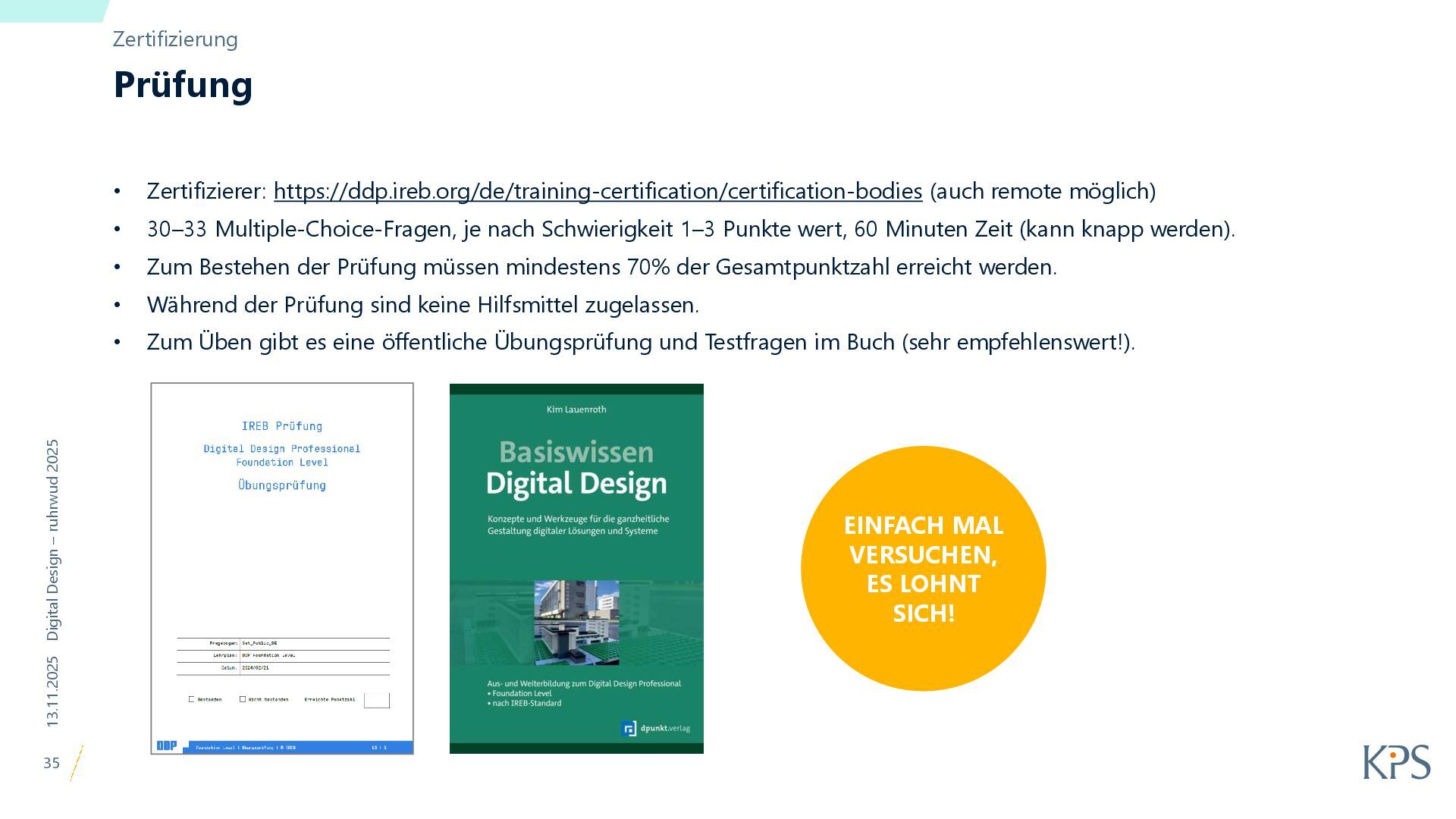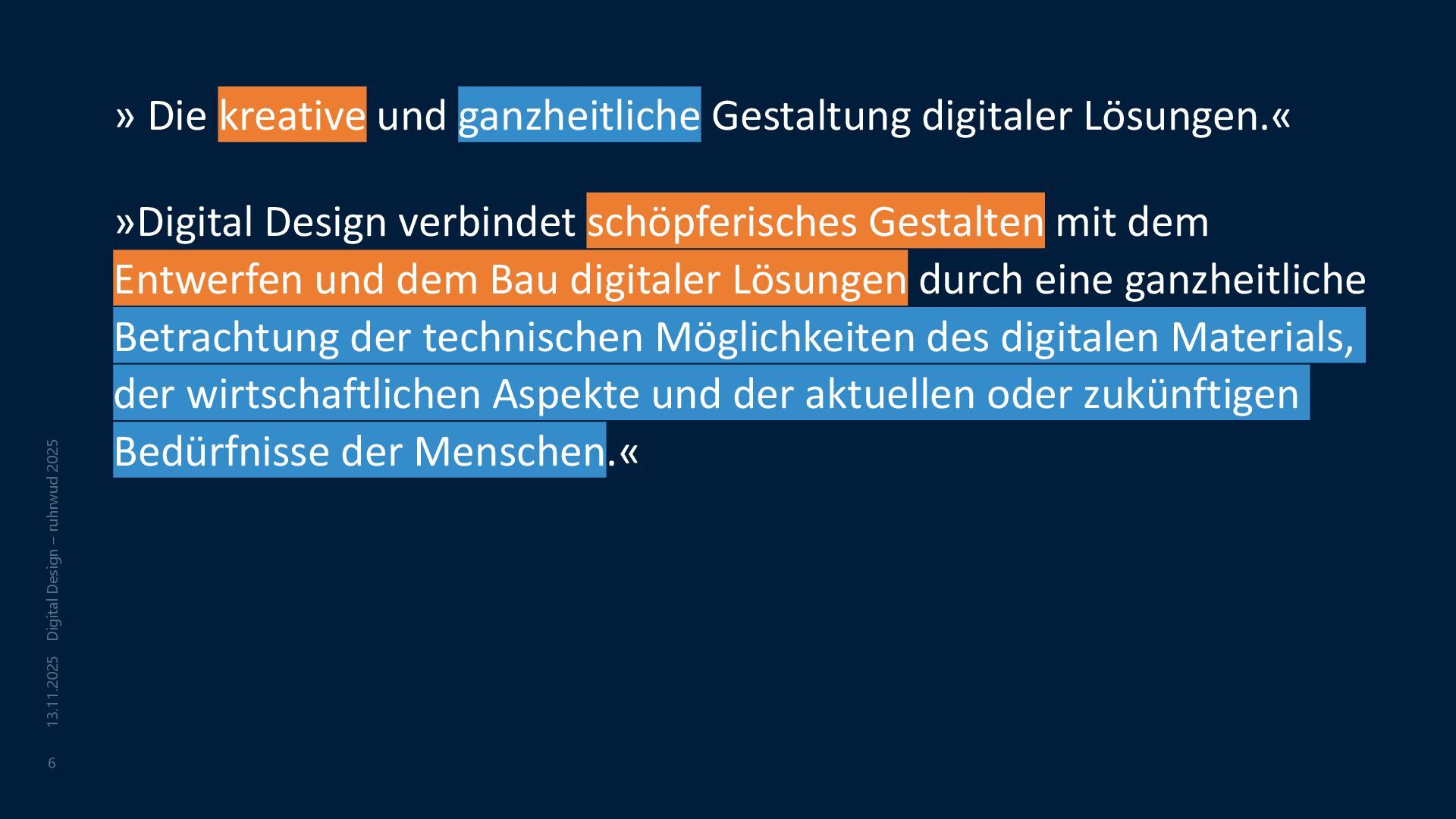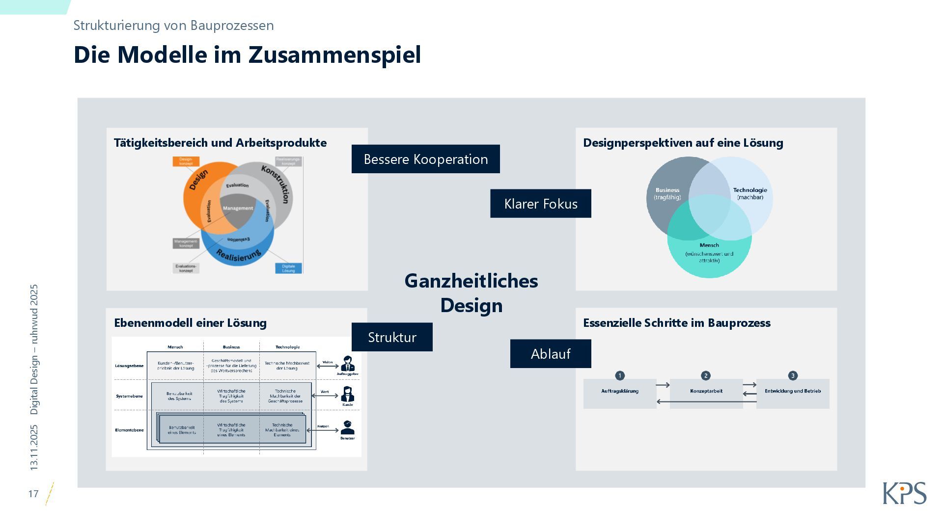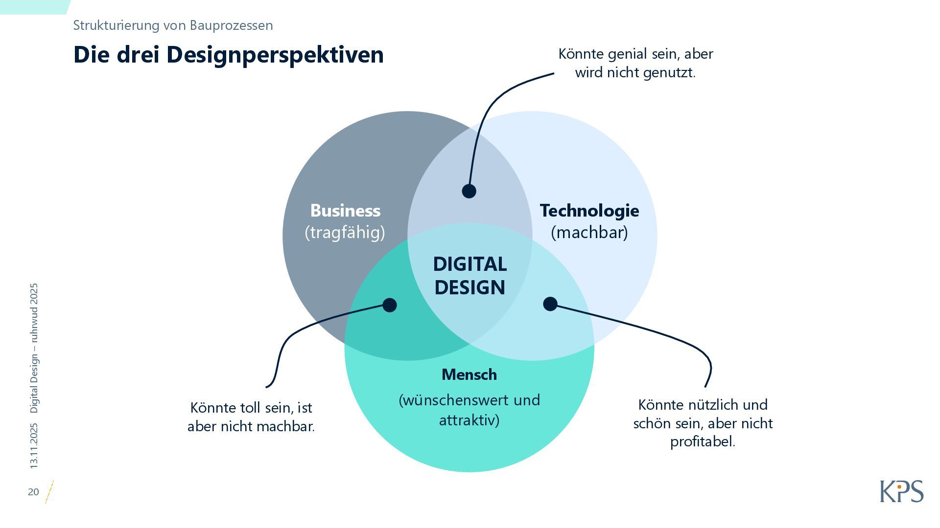 Digital Design bietet einen umfassenden Ansatz zur Gestaltung digitaler Lösungen, der Mensch, Business und Technologie ganzheitlich vereint. Analog zu Architektur oder Industriedesign etabliert sich Digital Design als eigenständiges Berufsbild mit dem Fokus, erfolgreiche digitale Lösungen zu gestalten. Doch was genau ist „Digital Design“? Dieser Vortrag beantwortet die Frage anhand des Digital Design Professional Curriculums und stellt zentrale Modelle und Prinzipien vor, wie das FFQ-Modell, die drei Designperspektiven, die drei Ebenen einer Lösung sowie Schritte, Tätigkeitsbereiche und Arbeitsprodukte im Bauprozess.