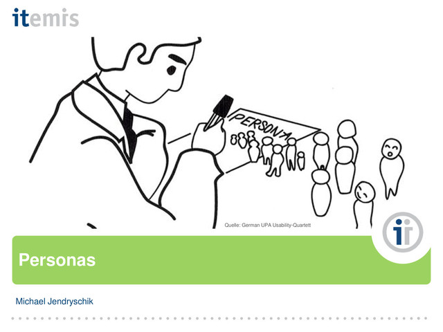 Personas sind archetypische Nutzer mit konkret ausgeprägten Eigenschaften und Vorlieben sowie einem konkreten Nutzungsverhalten. Die ermittelten Personas begleiten das gesamte Projekt von der Anforderungsermittlung bis hin zur Implementierung und Wartung. Der Vortrag zeigt, wie man Personas auf Basis empirischer Daten entwickelt und welche Vorteile die Arbeit mit Personas bei der Entwicklung interaktiver Systeme bietet.