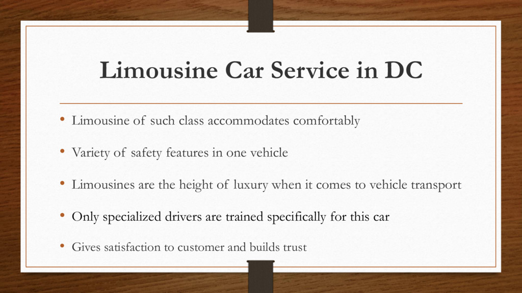 accommodates comfortably • Variety of safety features in one vehicle • Limousines are the height of luxury when it comes to vehicle transport • Only specialized drivers are trained specifically for this car • Gives satisfaction to customer and builds trust