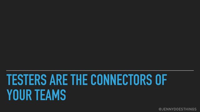 This makes testers the connectors of our teams. By communicating thoughtfully, we can change the entire morale of our team--and, as morale has been shown to be one of the best metrics for high performing teams, we can improve the overall quality of our products.