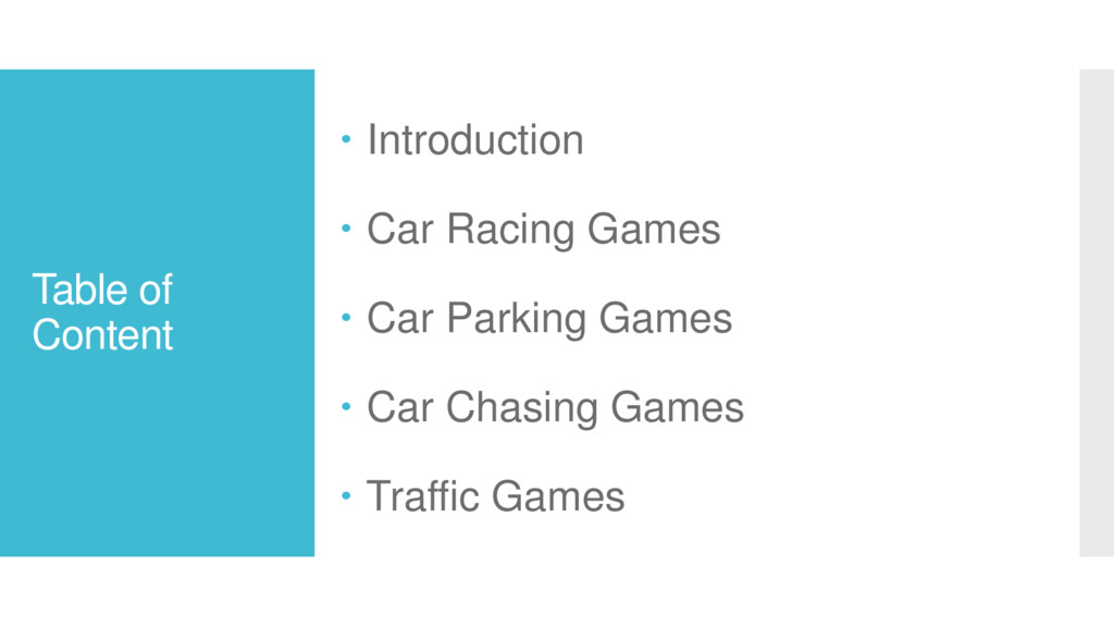 What are the top and famous car games available currently online for kids, see all in this presentation.