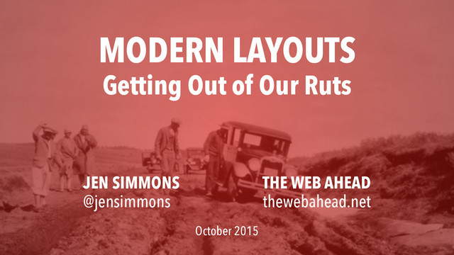 We’re in a rut. Web design solves problem by mirroring what’s always been done. This means reusing the same layouts again and again. And again. But it doesn’t have to be this way! Jen Simmons rallies web professionals to take a fresh approach. She challenges us to solve problems in ways not considered possible on the web. She starts by showing us what’s wrong and ends on a high note: hope.