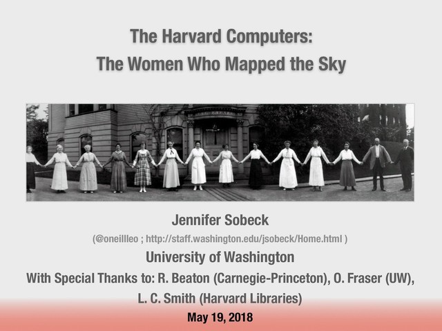 Sobeck (@oneillleo ; http://staff.washington.edu/jsobeck/Home.html ) University of Washington With Special Thanks to: R. Beaton (Carnegie-Princeton), O. Fraser (UW), L. C. Smith (Harvard Libraries) May 19, 2018