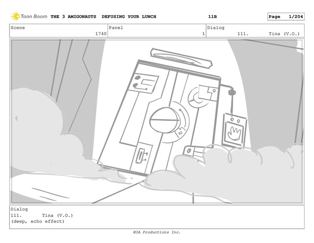 Dialog They all start singing again. THE 3 AMIGONAUTS DEFUSING YOUR LUNCH Page 156/204 11B ©3A Productions Inc.