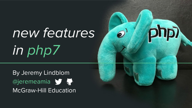 PHP7 is the first major version of PHP to be released since 2004, and has brought us dozens of new features and huge performance gains. Let's take a tour of the latest and greatest PHP has to offer, and also see if it is safe for you to update your servers. (First given in January 2016 to the @azPHP user group. Updated with information about PHP 7.1 in October 2016 for Desert Code Camp)