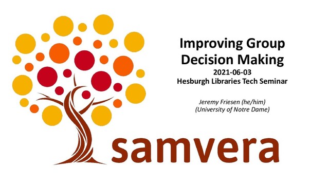 (About Presentation) Observed Problem Group decision making with multi-variant inputs are complicated social activities that tend to unduly favor quick-to-words people. Exhaustion and fatigue should not be why decisions are finalized. Can we create processes to improve collaborative decision-making?