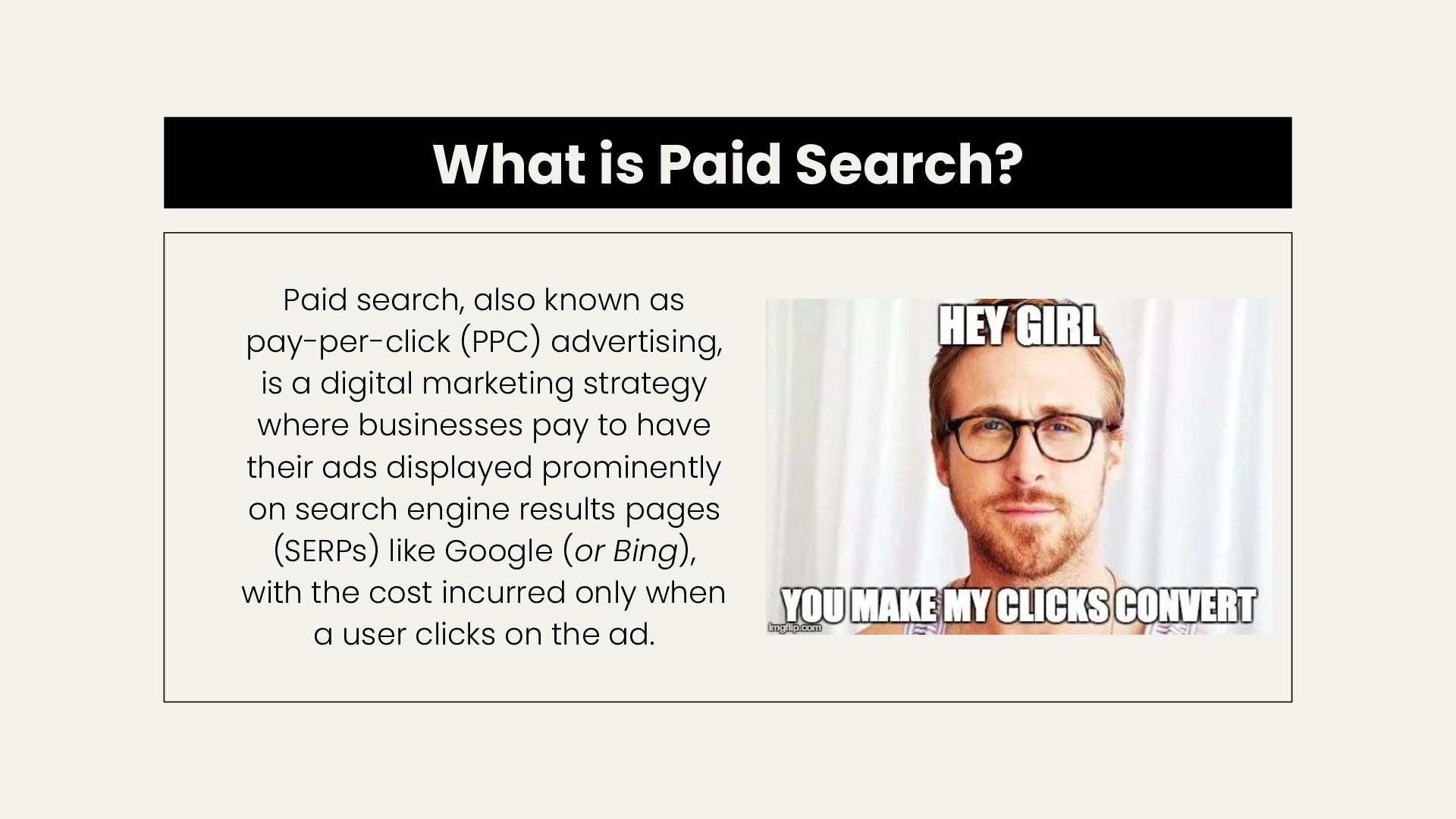(PPC) advertising, is a digital marketing strategy where businesses pay to have their ads displayed prominently on search engine results pages (SERPs) like Google (or Bing), with the cost incurred only when a user clicks on the ad.