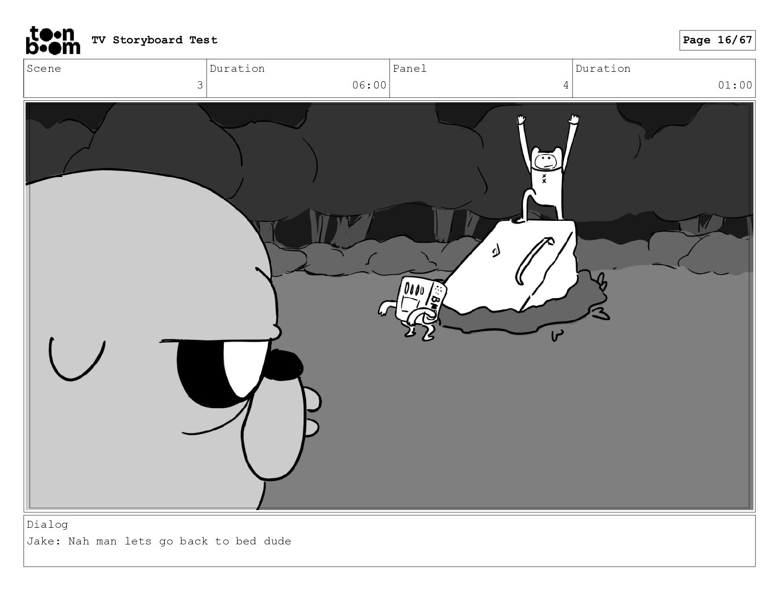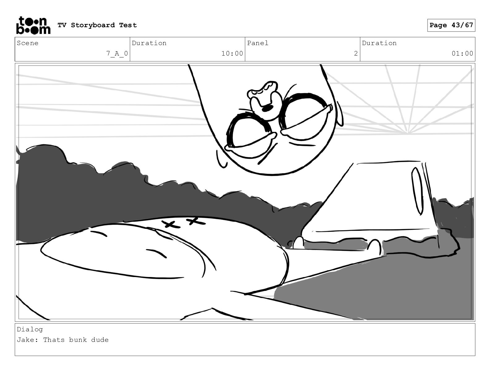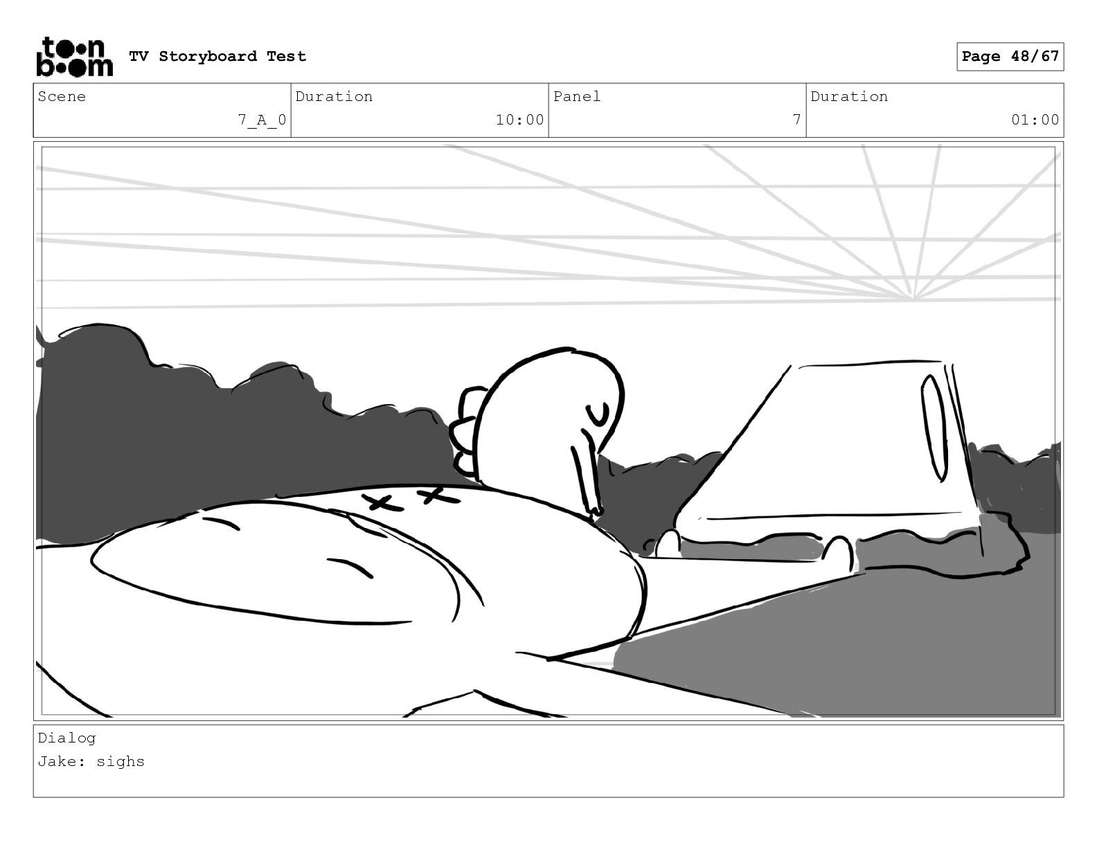Scene 7_A_0 Duration 10:00 Panel 2 Duration 01:00 Dialog Jake: