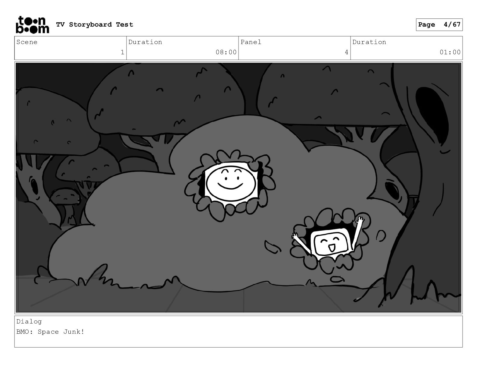 Scene 1 Duration 08:00 Panel 4 Duration 01:00 Dialog BMO:
