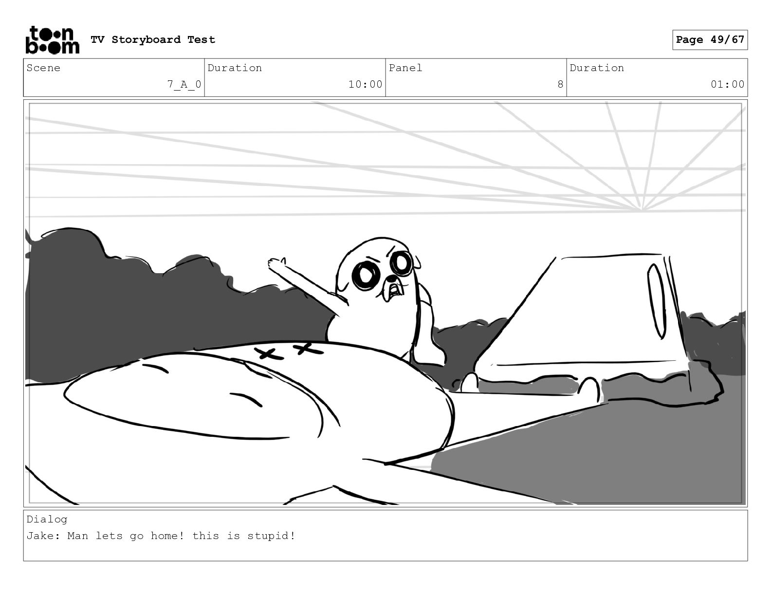 Scene 7_A_0 Duration 10:00 Panel 8 Duration 01:00 Dialog Jake:
