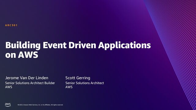 rights reserved. Building Event Driven Applications on AWS Senior Solutions Architect Builder AWS Scott Gerring Senior Solutions Architect AWS Jerome Van Der Linden A R C 3 0 1