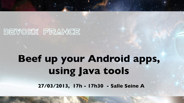 27 au 29 mars 2013 https://github.com/stephanenicolas/Quality-Tools-for-Android (http://goo.gl/pdwnq)