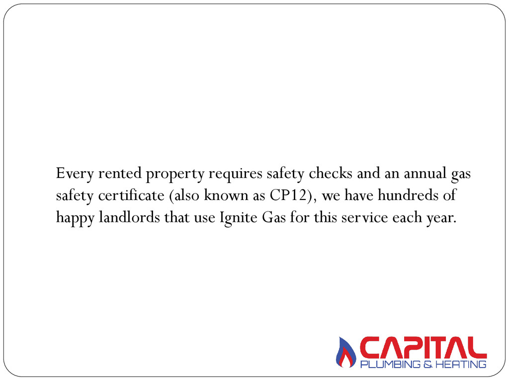 Every rented property requires safety checks and an annual gas safety certificate (also known as CP12), we have hundreds of happy landlords that use Ignite Gas for this service each year.
