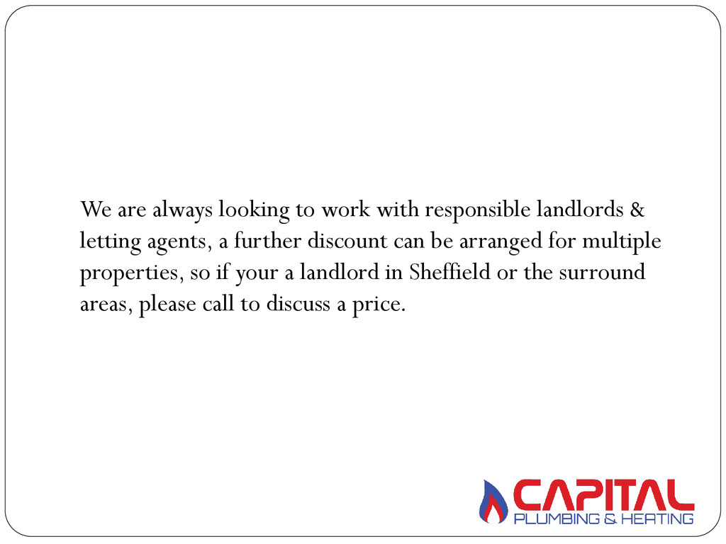 letting agents, a further discount can be arranged for multiple properties, so if your a landlord in Sheffield or the surround areas, please call to discuss a price.