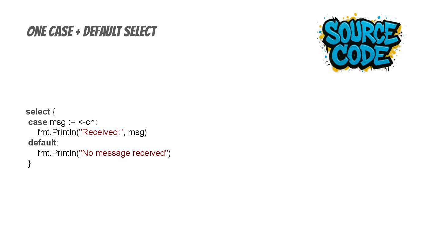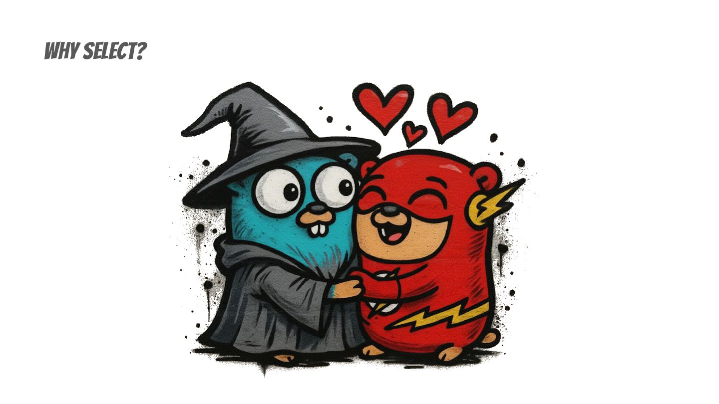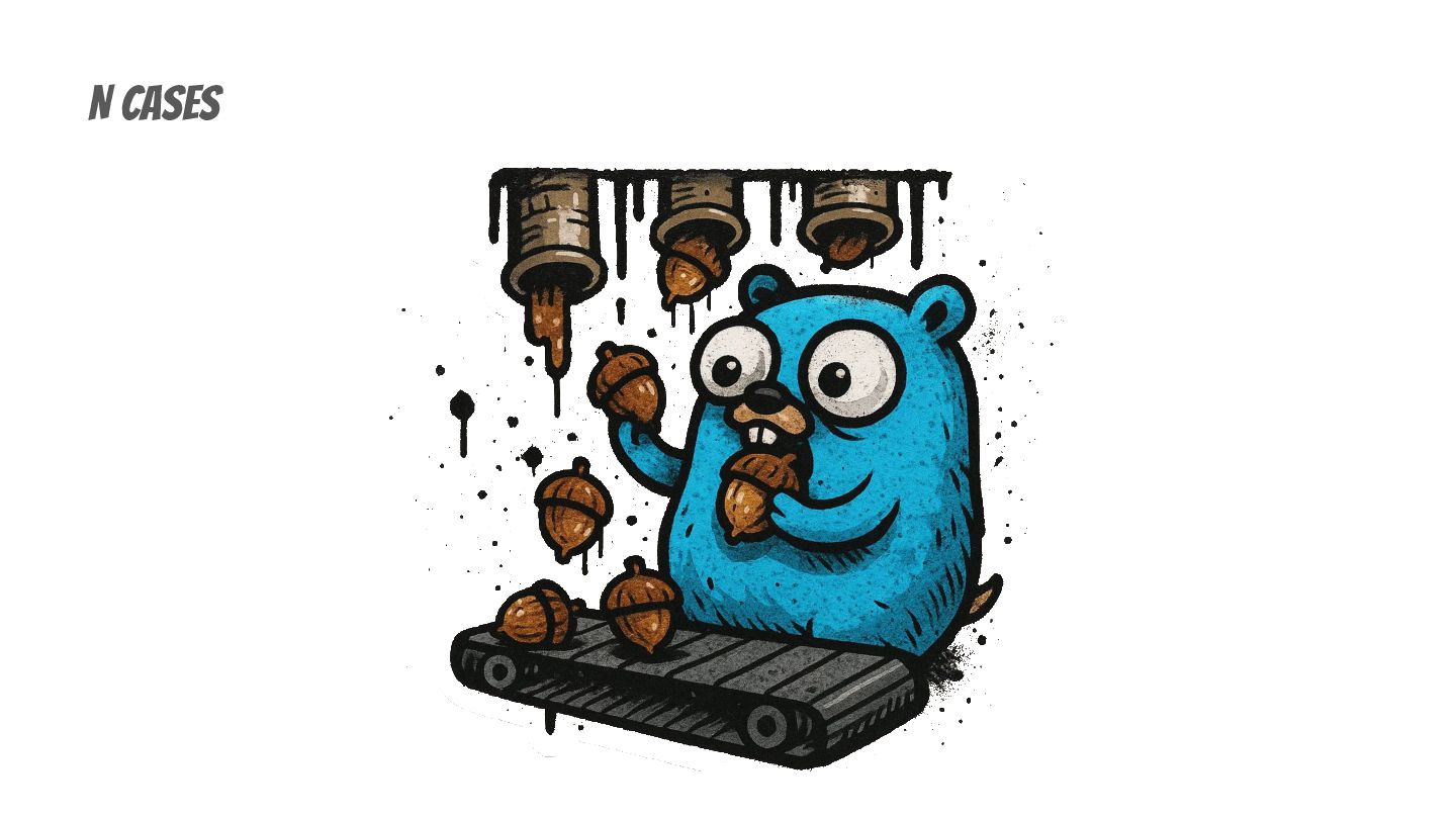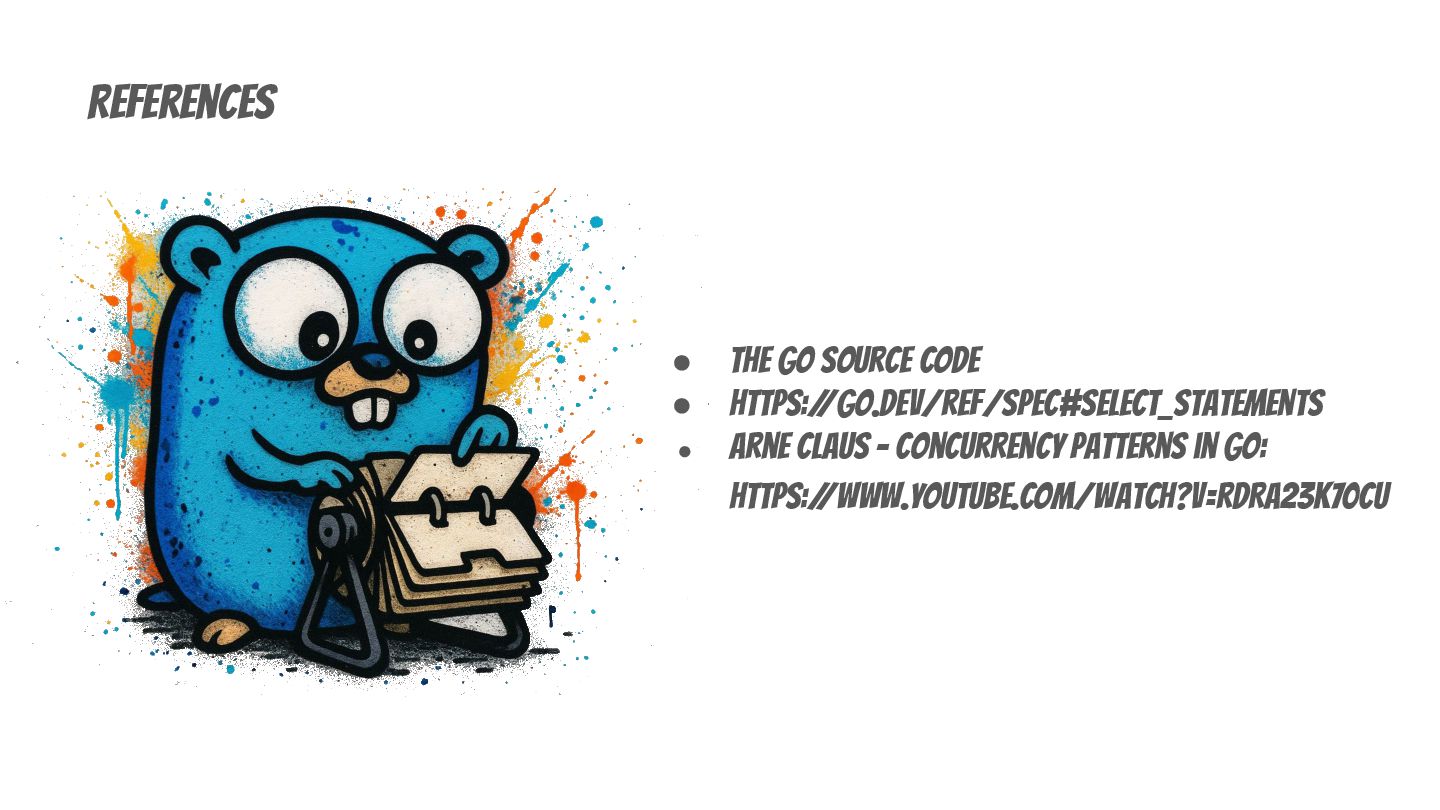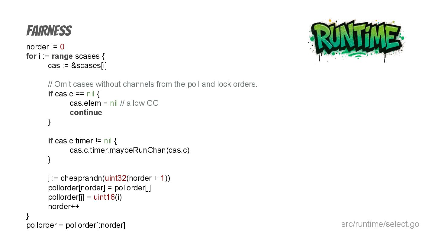 BODY> goto end } if chosen == 0 { <CASE 0 BODY> goto end } if chosen == 1 { <CASE 1 BODY> goto end } ... end: // Continue with code after select DOING THE WORK