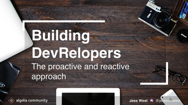 be able to explain all features … create community projects … create high-quality apps and demos that show off the API … take support shifts once a month … contribute to the documentation …. collect product feedback Marketing … lead the charge on our technical content … review content for developer-friendliness … use their networks to promote content … use their networks to get attendance for our events … go to meetups and conferences in their areas of expertise … go events outside their area of expertise and serve in a mentoring capacity to others who are there … monitor the health of our developer brand and whether we’re creating enough goodwill in the community … know which conferences and hackathons to sponsor … manage and build key individual relationships in the community … help the company reach and win over developer influencers … get community members to share their projects … create and moderate places for the community to gather Jess West @jessicaewest Sales / SE … create sales collateral … help outbound strategic accounts … participate in pre-sales activities … create upsell opportunities to customers they know Culture … own and enforce the code of conduct … help us hire a more diverse team Industry / External … know everything about their company’s API and their vertical(s) … be publicly visible, accessible and available (online and offline) … share what they’re learning back to the DevRel community …. do technical support for their API … have a firm grasp of emerging technologies … be embedded in communities other than their own … hold their company accountable to the community and the industry … speak to journalists and analysts Reality