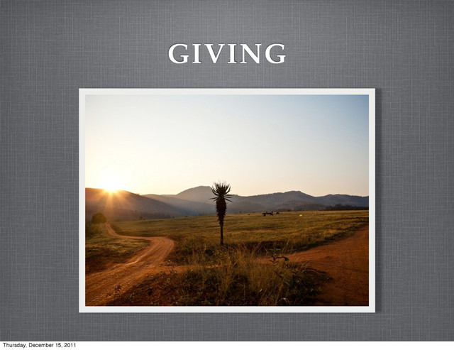 reap what you sow. - Galatians 6:7 The gift is to the giver, and comes back to him... - Walt Whitman What goes around, comes around. - Justin Timberlake Thursday, December 15, 2011