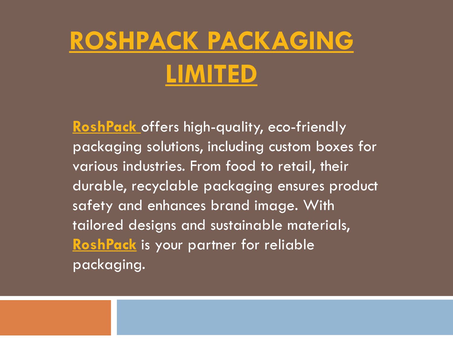 custom boxes for various industries. From food to retail, their durable, recyclable packaging ensures product safety and enhances brand image. With tailored designs and sustainable materials, RoshPack is your partner for reliable packaging.