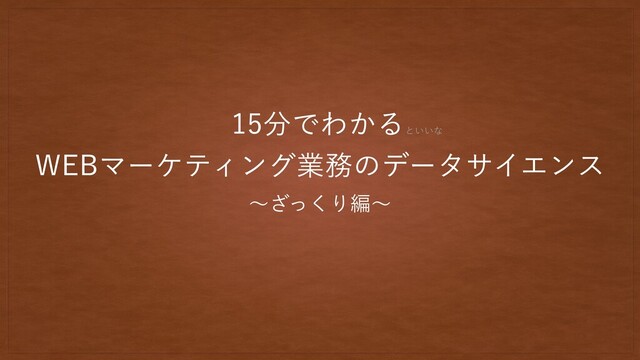 Webマーケティング業務のデータサイエンス ざっくり編 / data science i...