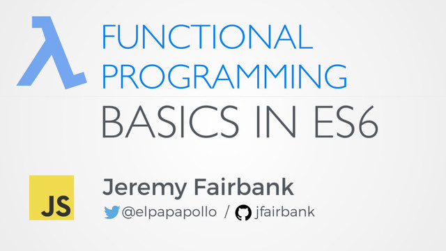 THANKS! Code: github.com/jfairbank/fp-basics-in-es6 Slides: bit.ly/codestock-17-fp-basics Jeremy Fairbank @elpapapollo / jfairbank