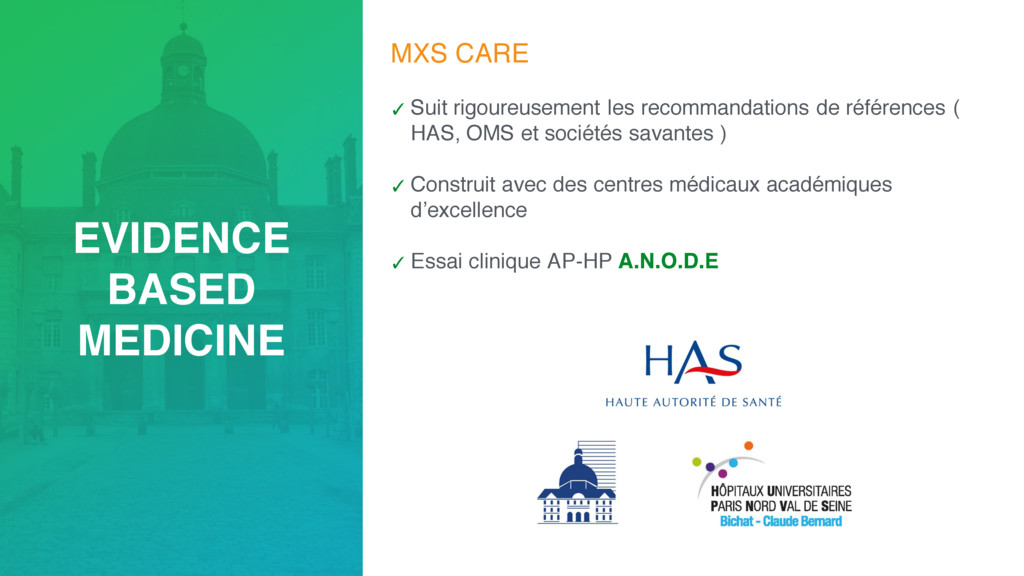 HAS, OMS et sociétés savantes ) ✓ Construit avec des centres médicaux académiques d’excellence ✓ Essai clinique AP-HP A.N.O.D.E EVIDENCE BASED MEDICINE