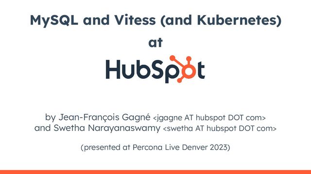 In 2017-2018, to simplify the deployment, allow easier automation and have better scaling options, HubSpot MySQL databases, previously run on RDS and EC2 instances, were migrated to Vitess and Kubernetes. In this talk, we share our experience of 4+ years running Percona Server with Vitess on Kubernetes in AWS: things that worked well, others that we had to adapt, and some open problems we are still facing. We will cover sharding, the automation tooling, and our journey to multi-region. The audience will be presented with a real-world, large MySQL/Vitess/Kubernetes deployment: you will learn from what we built, and hopefully avoid some of our mistakes. Come to this talk to see how HubSpot operate 800+ MySQL MySQL replication clusters / keyspaces with Vitess and Kubernetes.