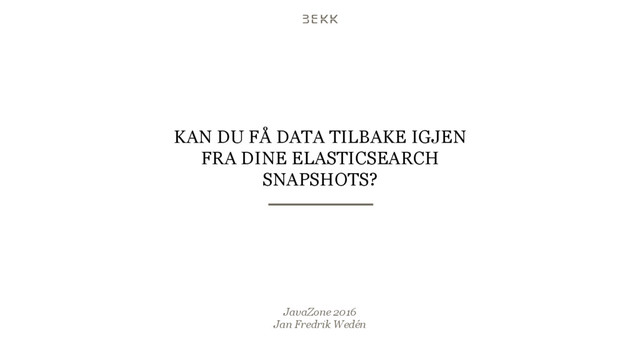 Elasticsearch offers the snapshot/restore API for handling backups. How do you actually get data back from a snapshot? Have you ever tried. This lightning talk demonstrates usages of the restore API and strategies for restoring data back into Elasticsearch with and without downtime.