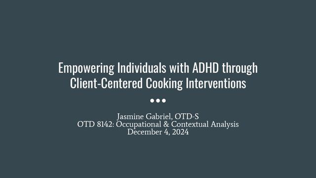Recommendations for occupational therapy interventions for adults with ADHD: A consensus statement from the UK adult ADHD network. BMC Psychiatry, 21(72). https://doi.org/10.1186/s12888-021-03070-z Bonder, B. (2015). Anxiety disorders. In Psychopathology and function (pp. 185–191). Slack Incorporated. Bonder, B. (2015). Depressive disorders. In Psychopathology and function (pp. 146–152). Slack Incorporated. Bonder, B. (2015). Neurodevelopmental disorders. In Psychopathology and function (pp. 69–72). Slack Incorporated. Fleming, M. H. (1991). The therapist with the three-track mind. American Journal of Occupational Therapy, 45(11), 1007–1014. https://doi.org/10.5014/ajot.45.11.1007 Gemmell, P. A. L., & Bailliard, A. (2024). An occupational perspective on navigating food-related occupations for adults with attention deficit hyperactivity disorder. American Journal of Occupational Therapy, 78(Suppl. 2), 7811500116p1. https://doi.org/10.5014/ajot.2024.78S2-PO116 Pendleton, H. M., & Schultz-Krohn, W. (2018). Chapter 7: Teaching activities in occupational therapy. In Pedretti’s occupational therapy: Practice skills for physical dysfunction (8th ed., pp. 224–256). Elsevier. Kelsch, K. L., & Miller, K. L. (2016). Occupational therapy interventions for ADHD: A systematic review. Occupational Therapy Capstones, 107. University of North Dakota. https://commons.und.edu/ot-grad/107