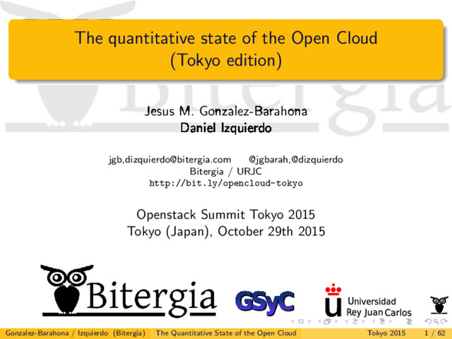 Talk at OpenStack Summit, Tokio 2015 (Oct. 29th) [video]. The talk presents a quantitative analysis of the projects producing the main free, open source software cloud platforms: OpenStack, Apache CloudStack, OpenNebula and Eucalyptus. The analysis will focus on the communities behind those projects, their main development parameters, and the trends that can be observed. A bonus track featuring some new Kibana--based dashboards for OpenStack is included.