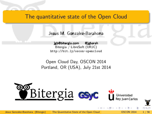 Understanding the inner life of free / open source software projects is of fundamental importance to developers, users and decision makers. This talk helps to understand what's happening behind the curtains in the most relevant open cloud platforms, by analyzing the rich data obtained from their developing repositories.