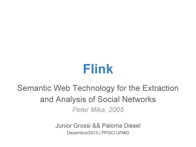 Coletar informações pessoais de pesquisadores ▪ Web pages, e-mails, publicações ◦ "FOAF ontology" • 608 pesquisadores de Web Semântica ◦ Links de um pesquisador ▪ Informações pessoais ▪ "Rede Social de Pesquisador"